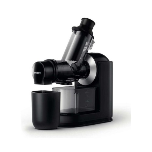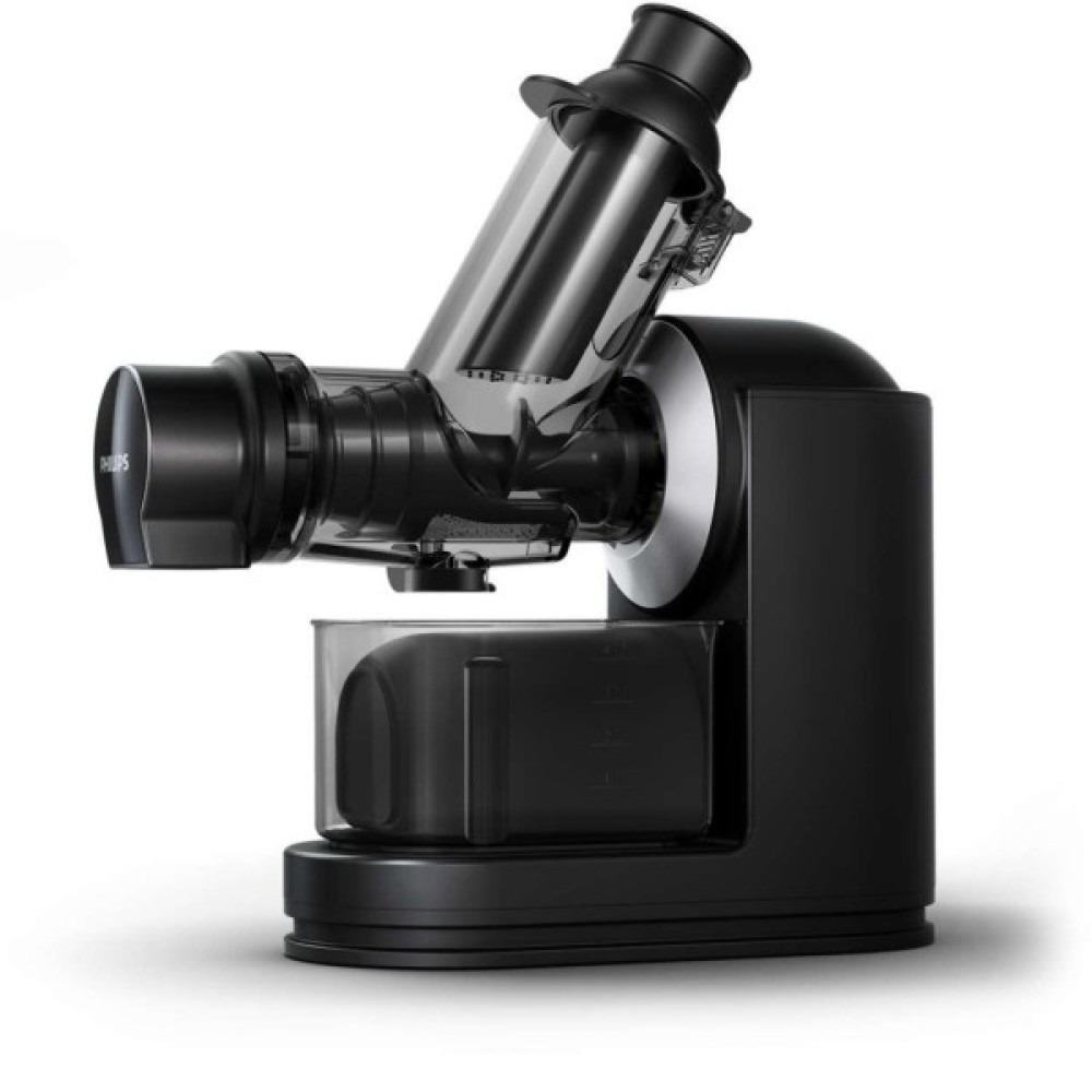 Дана соковижималка від Philips виготовлена з міцного і стійкого корпусу, який не ковзає під час роботи. Зрозуміле управління допоможе швидко навчитися користуватися пристроєм, а проста очищення заощадить чимало часу. За рахунок відсутності гострих кутів у конструкції, соковижималка без будь-яких труднощів промивається під струменем проточної води. Що залишився макуха, частинки продуктів і волокон змиваються з деталей приладу за лічені секунди.