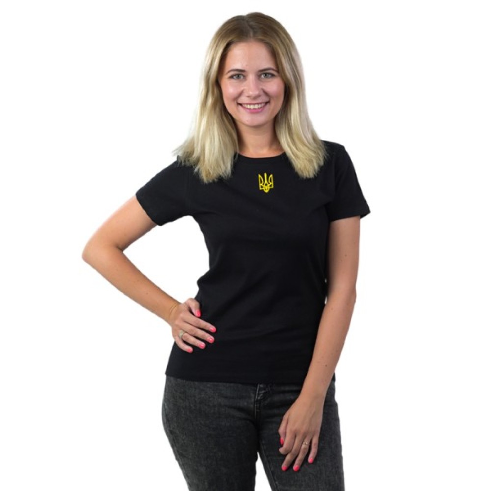 Футболка жіноча зі стильним принтом Тризуб, горловина з круглим вирізом, колір чорний, від французького бренду Sols.