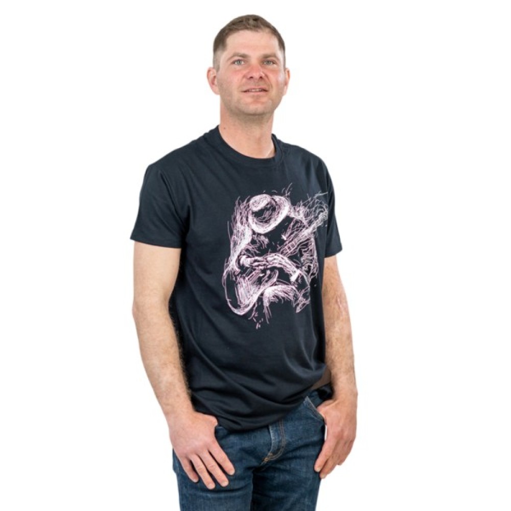Футболка чоловіча зі стильним принтом Гітарист, горловина з круглим вирізом, колір чорний, від французького бренду Sols.