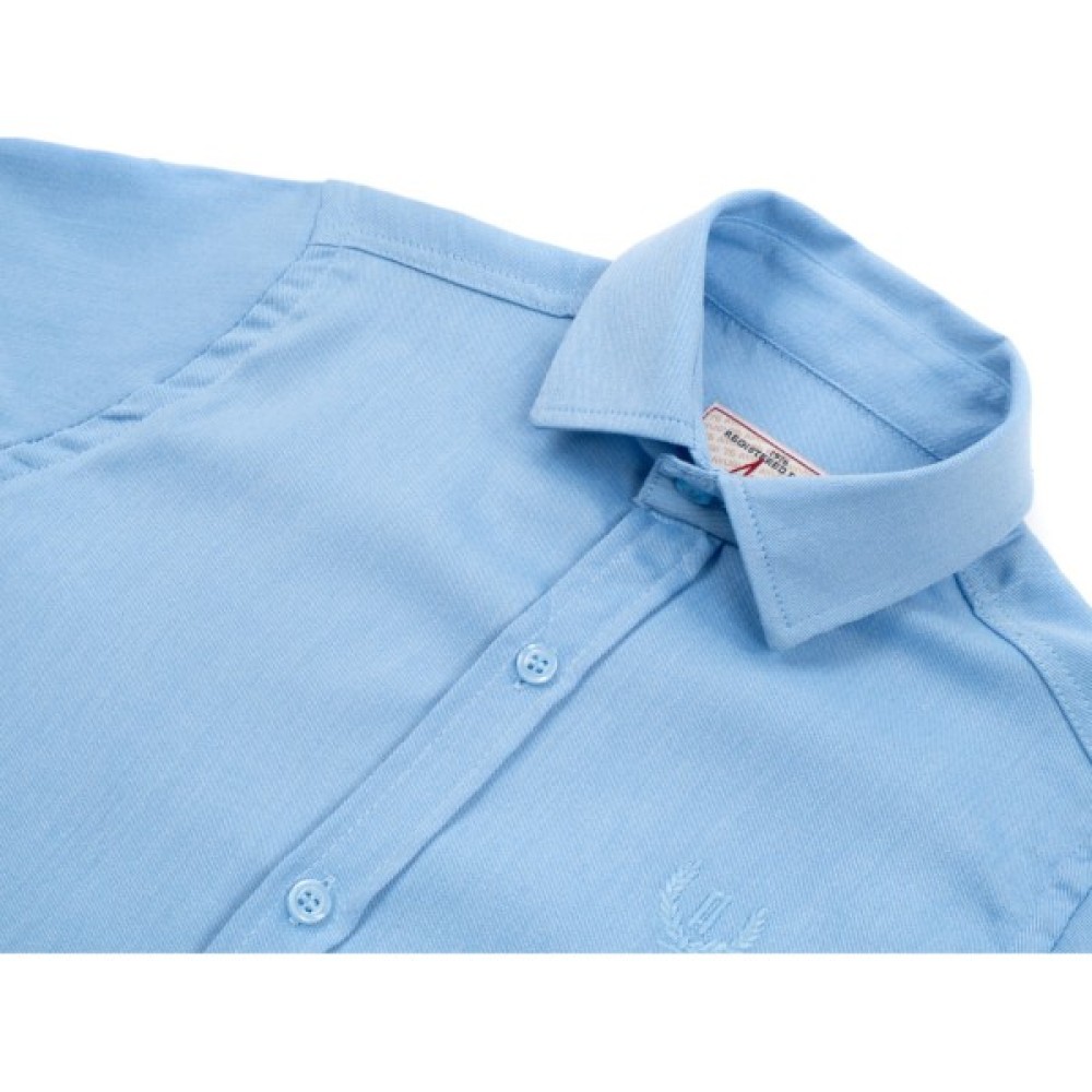 Класична модель насиченого блакитного кольору, прямого силуету, з короткими рукавами, виготовлена з натуральної бавовни, з додаванням 5% еластану для збереження форми виробу.
