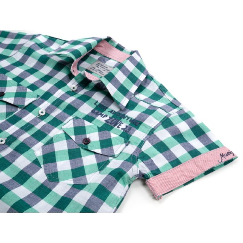 Стильна легка сорочка в клітинку з коротким рукавом для хлопчика.