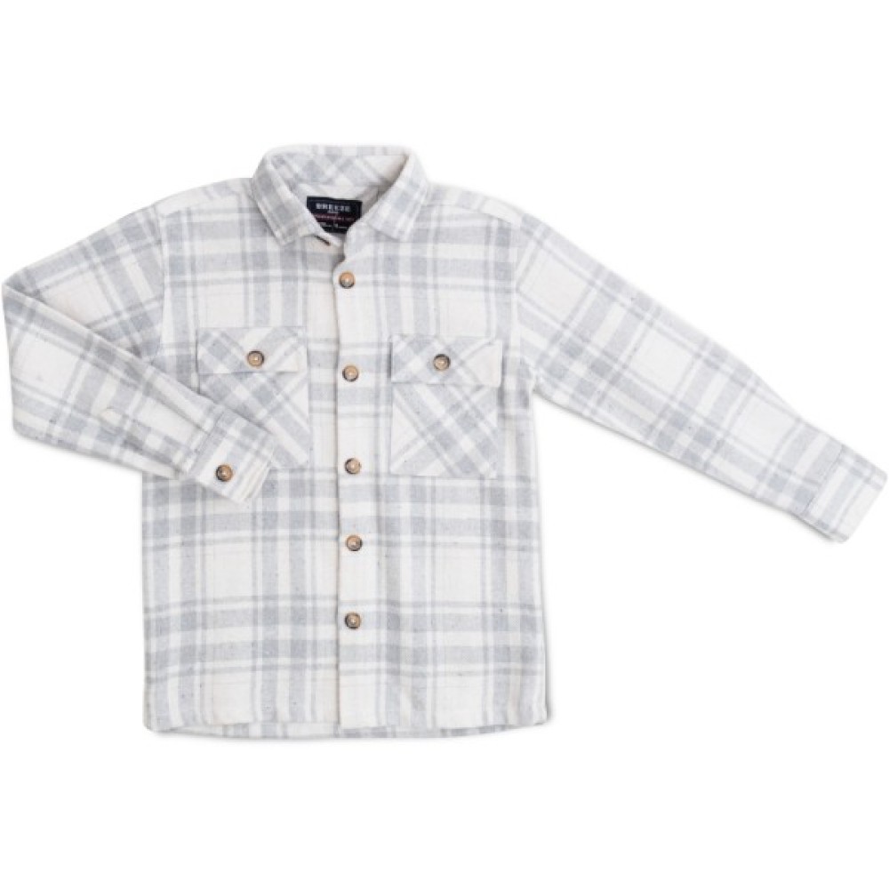 Щільна, тепла байкова сорочка у клітинку, у світло-сірій, кремовій кольоровій гамі, дуже модна, трендова річ – 100% mast have для кожного модника та модниці цього сезону!