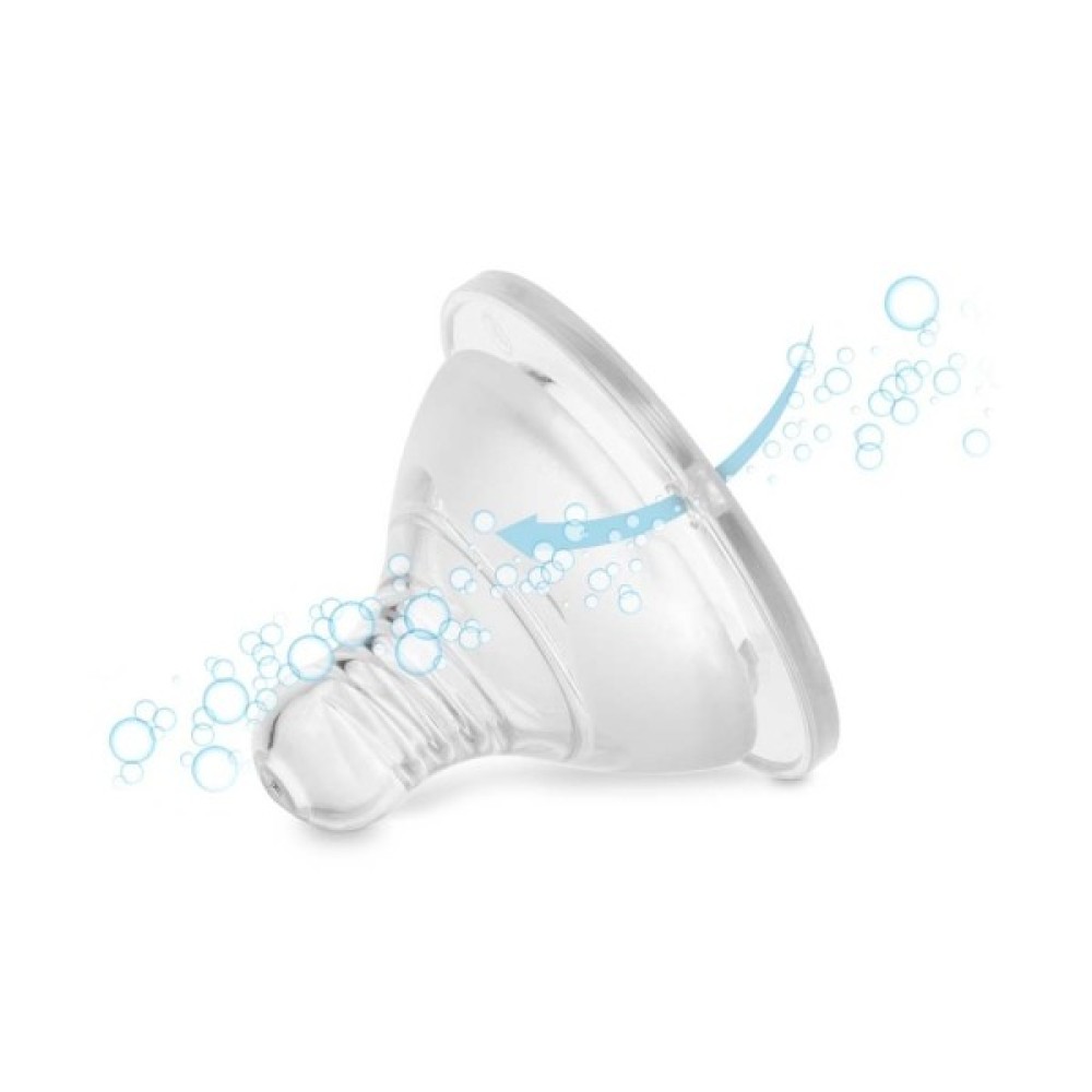 • Повітряний клапан забезпечує циркуляцію повітря, запобігаючи заковтуванню повітря малюком та знижуючи ймовірність виникнення колік.