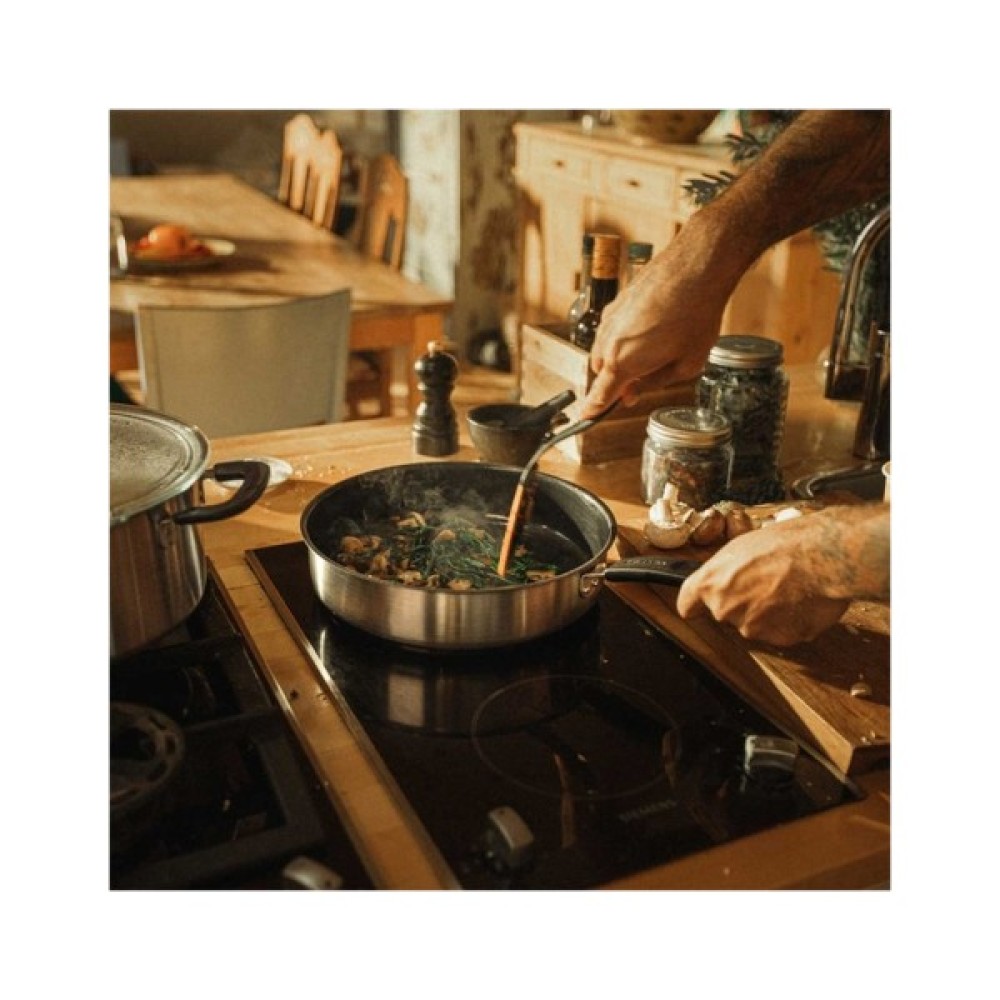 Сковорода розміром 26 см виготовлена на 90% із переробленої нержавіючої сталі та може використовуватися на всіх плитах, включаючи індукційні. Антипригарне керамічне покриття Ceratec, яке не містить пластику, легко чиститься і можна мити в посудомийній машині.