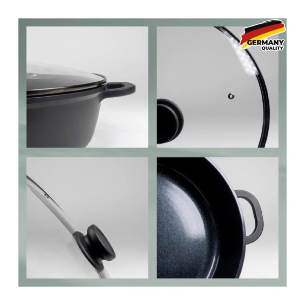 багатошарове дно; отвір на кришці для відводу пари; ергономічна ручка; дві ручки