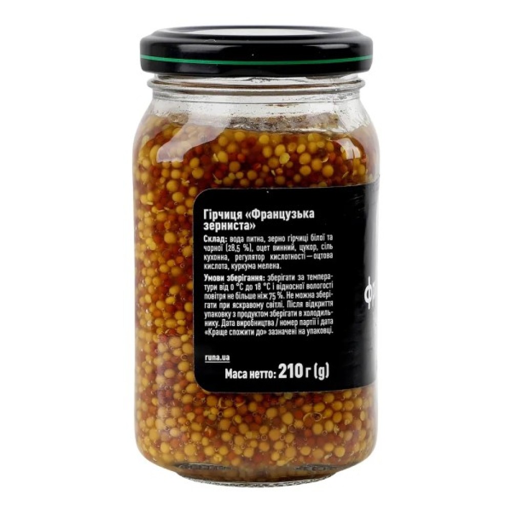 Соус, Руна, Гірчиця, Французька, зерниста, 210, г, 4820015944955
