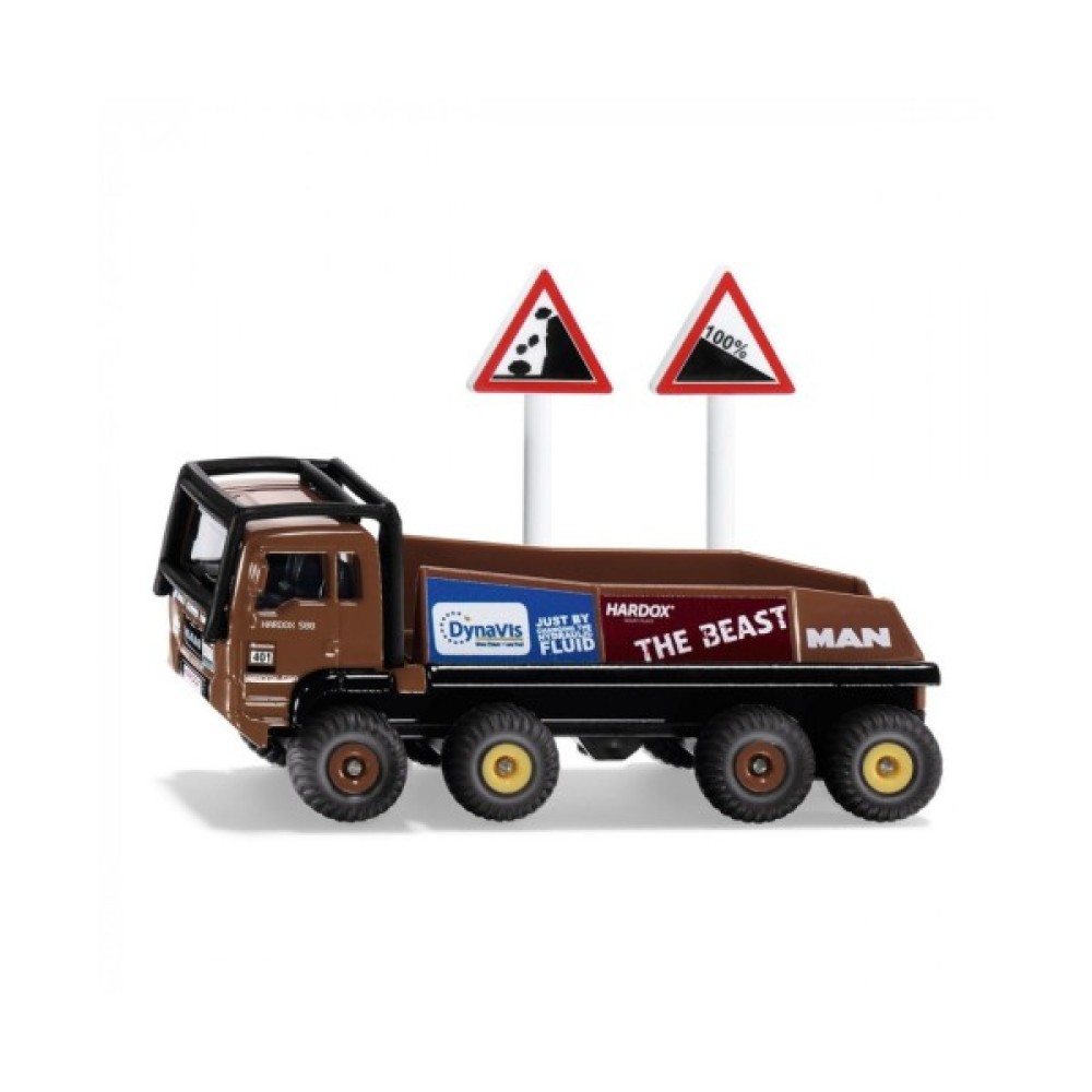 Модель вантажівки Siku HS Schoch 8X8 MAN призначена для екстремальних позашляхових змагань. Машина оснащена колесами з повним приводом і шинами з глибоким протектором, призначеними для підкорення будь-якого бездоріжжя. Автомобіль 8-кратного чемпіона European Truck-Trial прикрашений оригінальними спонсорськими написами, кабіна виготовлена з металу і посилена зверху рамою. В комплекті є два дорожніх знака, за допомогою яких дитина зможе грати різні сюжети і відчує себе справжнім водієм, який проїжджає через перевал.