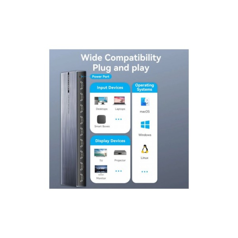 HDMI 1.4 UHD 4K 30Hz 3D, HDCP 1x8 ports