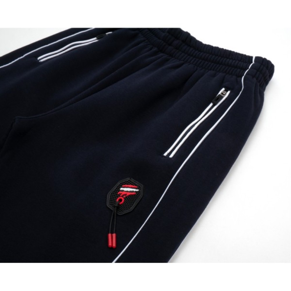 - Зручні, вільні штани на манжетах, з двома вертикальними прорізними кишенями на блискавках та еластичним широким суцільнокроєним трикотажним поясом, підгорнутим та застроченим разом з широкою гумкою, забезпечать комфорт при носінні та оптимальну посадку по фігурі. Штани прикрашені так само, як кофта.