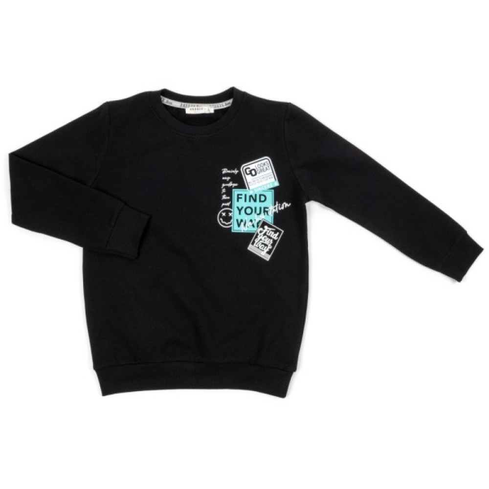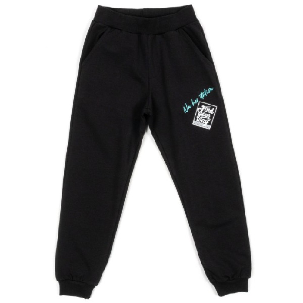 - Чудовий, трикотажний костюм гладко-чорного кольору для хлопчика: світшот і штани на манжетах.