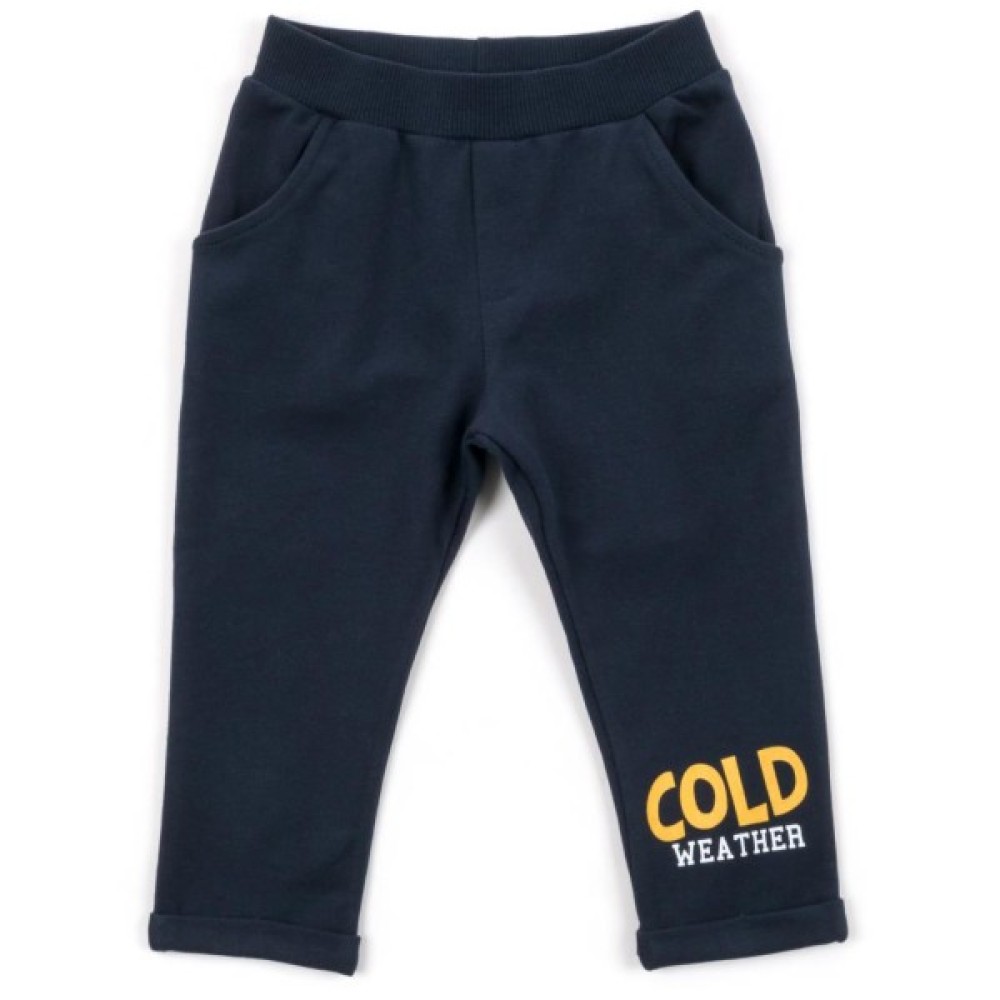 Затишні, темно - синього кольору штани, завужені до низу, без манжет, з модними підворіттями, з двома прорізними кишенями.