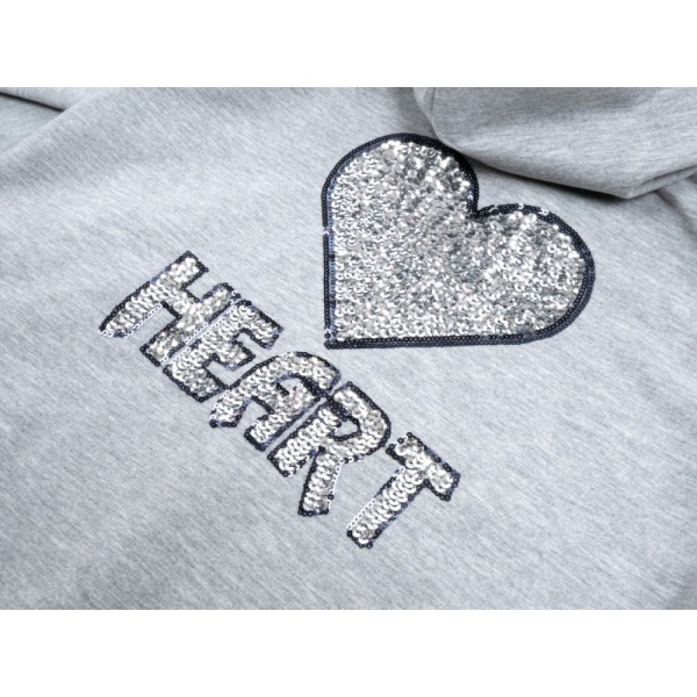 • Зручні штани на манжетах з двома скошеними прорізними кишенями, також прикрашені на одній зі штанин яскравим написом «HEART» з паєток. Еластичний широкий пояс з подвійною трикотажною «гумкою», посилений щільною, вставленою «гумкою», забезпечить комфорт та оптимальну посадку по фігурі.