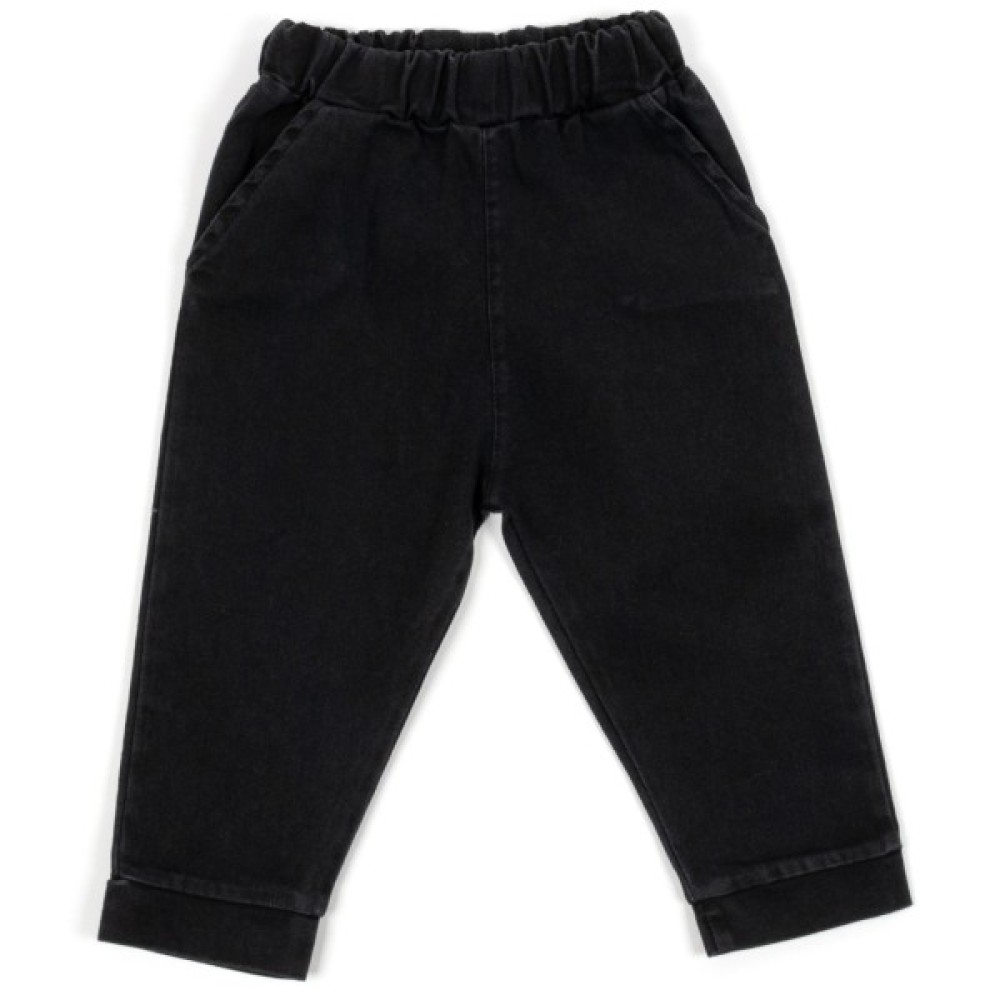 - Штанці зручні - тонкий, еластичний джинс-котон кольору графіт, під резиночку в поясі з декоративними манжетиками з основної тканини по низу, забезпечать дитині повну свободу рухів і оптимальну посадку по фігурі.