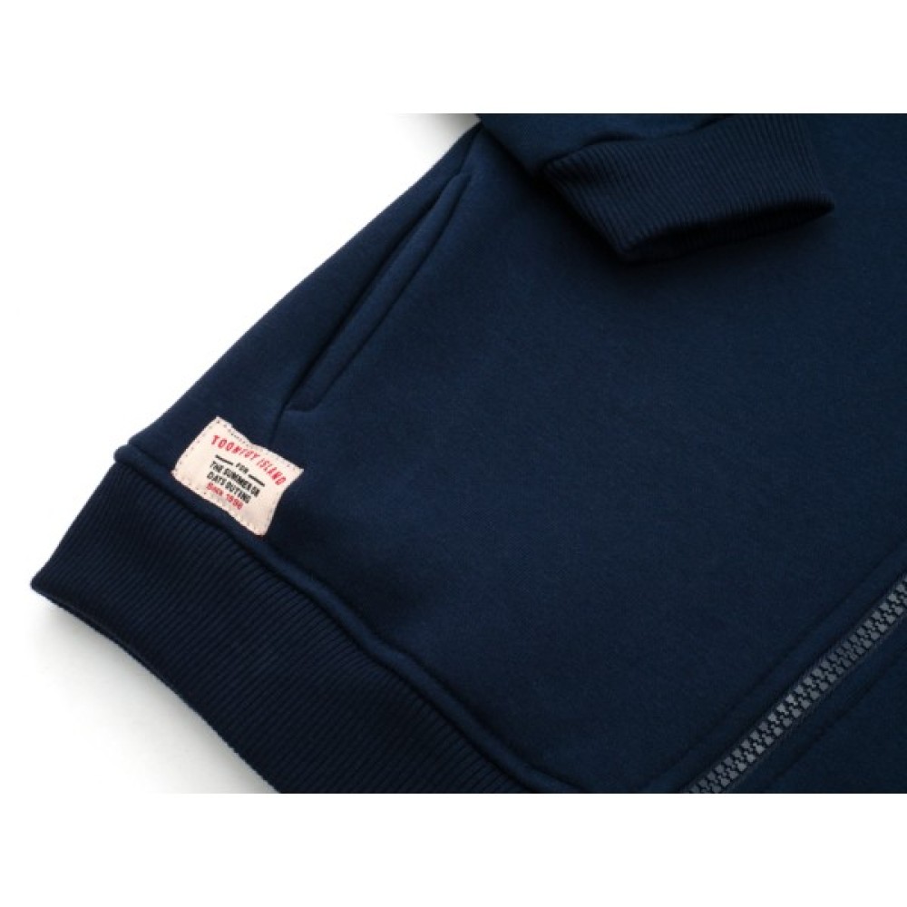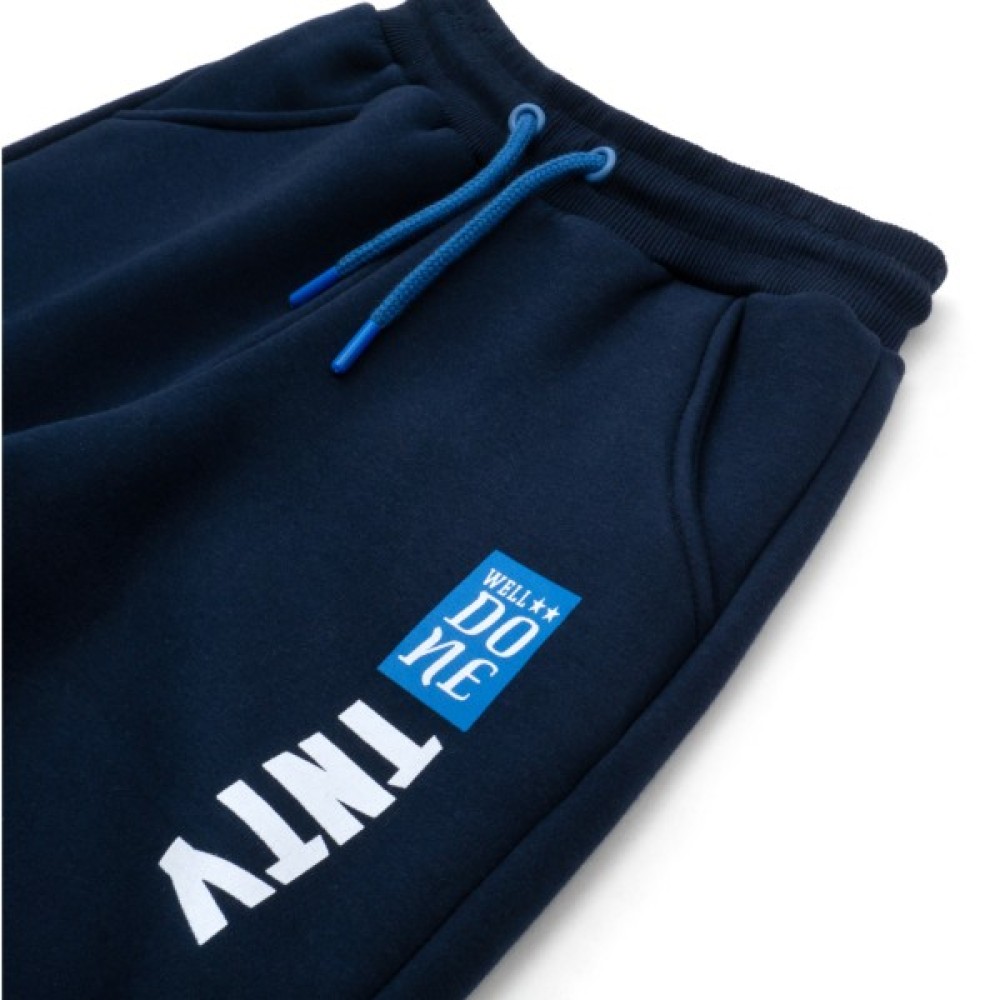 • Модний, дуже ефектний, зручний та теплий темно-синій вільний спортивний костюм з каптуром, прикрашений кольоровими принтовими накатами та фірмовою нашивкою від тм Toontoy: кофта-олімпійка з каптуром та штани на манжетах.