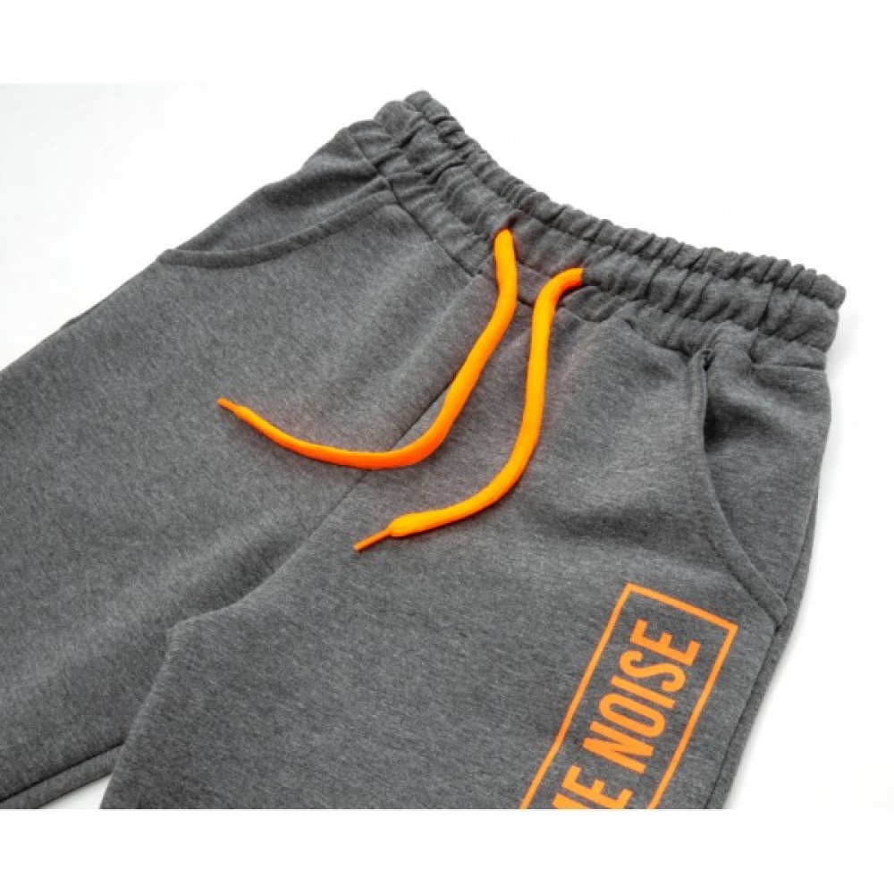 Затишні штани на манжетах, з двома скошеними прорізними кишенями, також прикрашені яскравими вертикальними принтовими написами. Еластичний пояс та манжети, у подвійну трикотажну «гумку», забезпечать затишок та оптимальну посадку по фігурі. Пояс посилений широкою, вставленою всередину, гумкою. Шнурок яскравий, робочий.