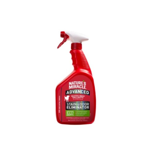 Знищувач плям і запахів з посиленою формулою для собак Nature’s Miracle справляється з найстійкішими забрудненнями, в тому числі і з тими, що в’їдаються та важко вивести. Спеціальна формула з біоензимами і активним киснем усуває найскладніші органічні плями та запахи, включаючи глибокі забруднення від трави, сигарет, корму, сечі, фекалій, крові і т. п. Можливості формули цього знищувача плям і запахів робить його найефективнішим продуктом в лінійці. Засіб може використовуватися для усунення плям та запахів, залишених собаками та іншими тваринами на килимах, тканинах, твердих поверхнях, переносках і спальних місцях тварини.