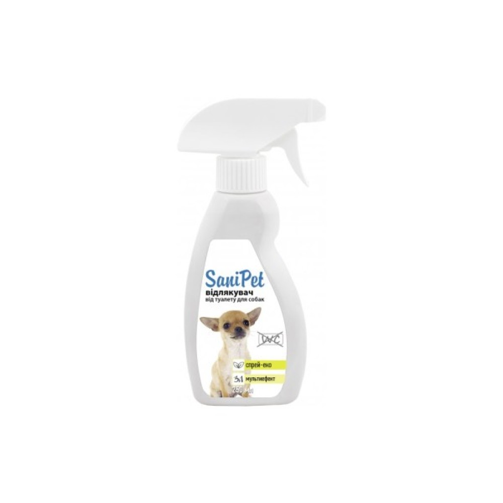 Спрей допоможе відучити собак та цуценят від звички випорожнюватися в непристосованих для цього місцях, а також від звички мітити територію. Спрей має дисциплінарний вплив проти поганої звички, яку доведеться викорінювати кілька днів. Для більшого ефекту небажане місце туалету слід зробити менш доступним.