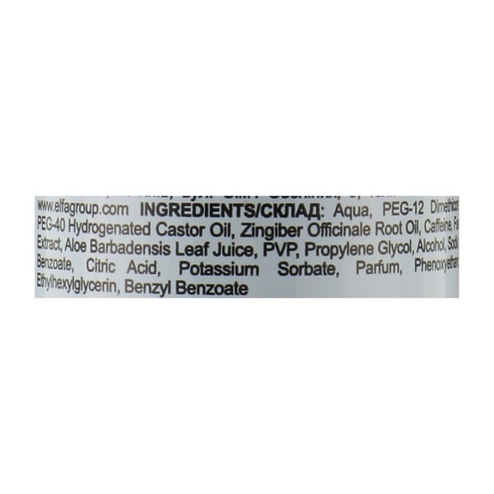 До складу входять імбирна олія та кофеїн, які покращують мікроциркуляцію, сприяють притоку поживних речовин до волосяних фолікулів, зміцнюють пасма і запобігають випадінню волосся.
