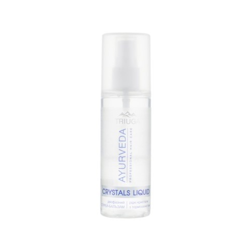 Двофазний спрей-бальзам Triuga Ayurveda Crystals Liquid стане справжнім цілющим еліксиром для пошкодженого волосся сучасної представниці прекрасної статі. Він підтримує оптимальний рівень зволоженості пасом і запобігає процесу їхньої дегідратації. Косметичний продукт згладжує розпушені під час миття кутикули, що забезпечує локонам шовковистість і полегшує розчісування. Він регенерує ушкоджені ділянки, заповнюючи порожнечі реконструювальними мікрочастинками та повертає до життя посічені кінчики.