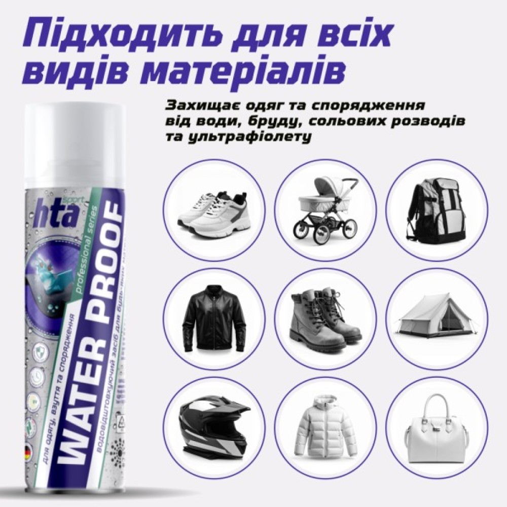 - Водовідштовхувальний засіб HTA Waterproof ефективний продукт, який стане у нагоді як в екстрених ситуаціях, так і в повсякденному житті!