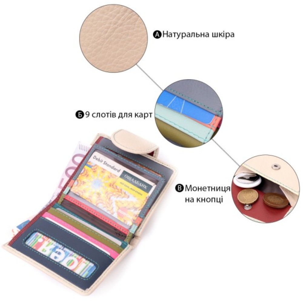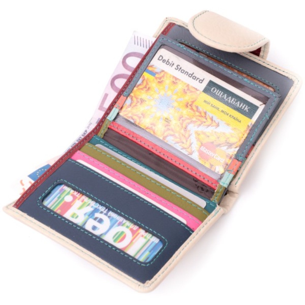 Гаманець кремово-білого кольору зовні та різнобарвний усередині – це дуже стильно та сучасно.