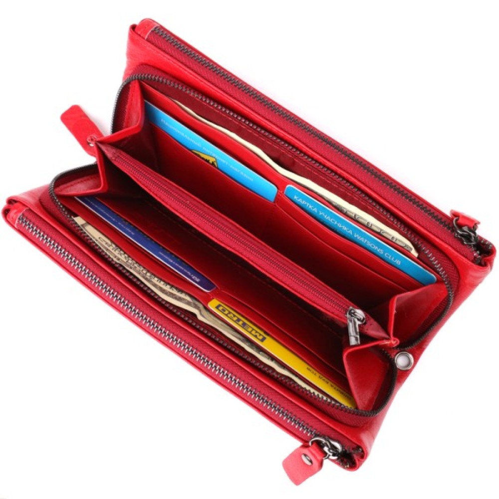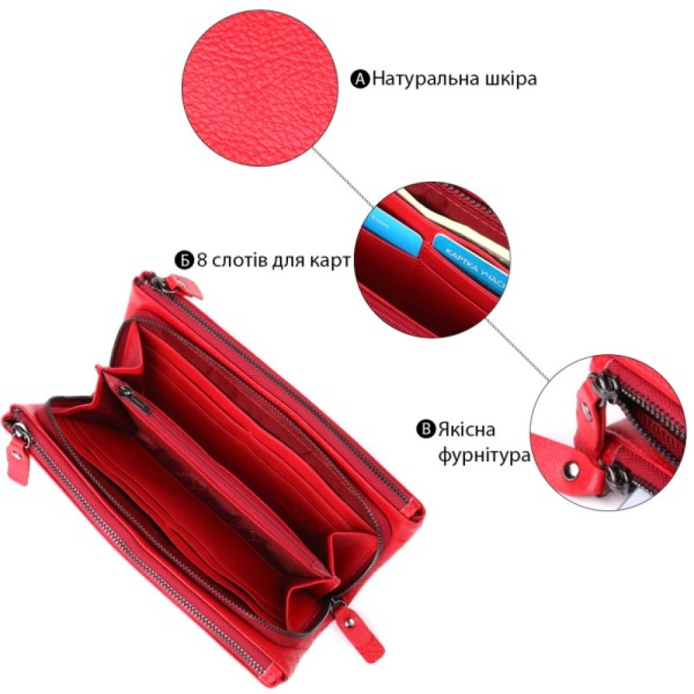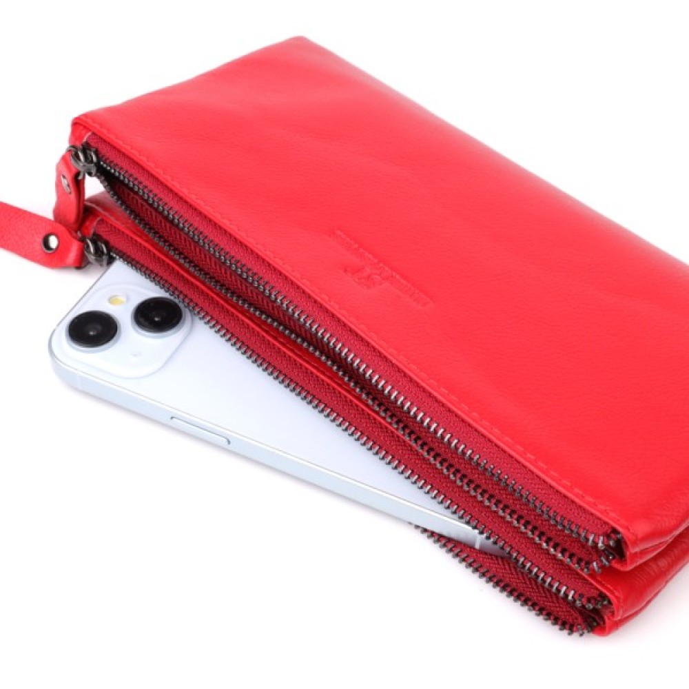 Яскравий жіночий гаманець-клатч, який відрізняється своєю місткістю та універсальністю. У ньому легко розміститься смартфон, що дозволяє використовувати його як альтернативу вечірній сумочці.