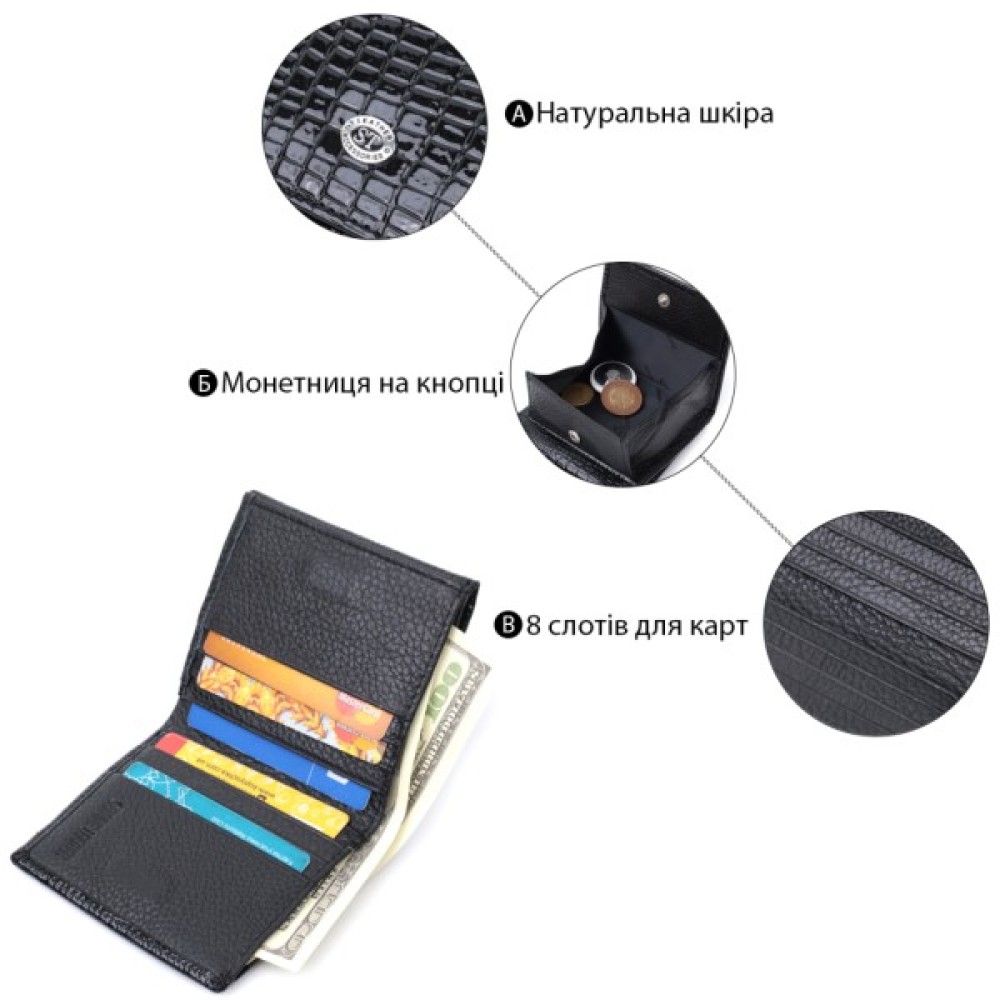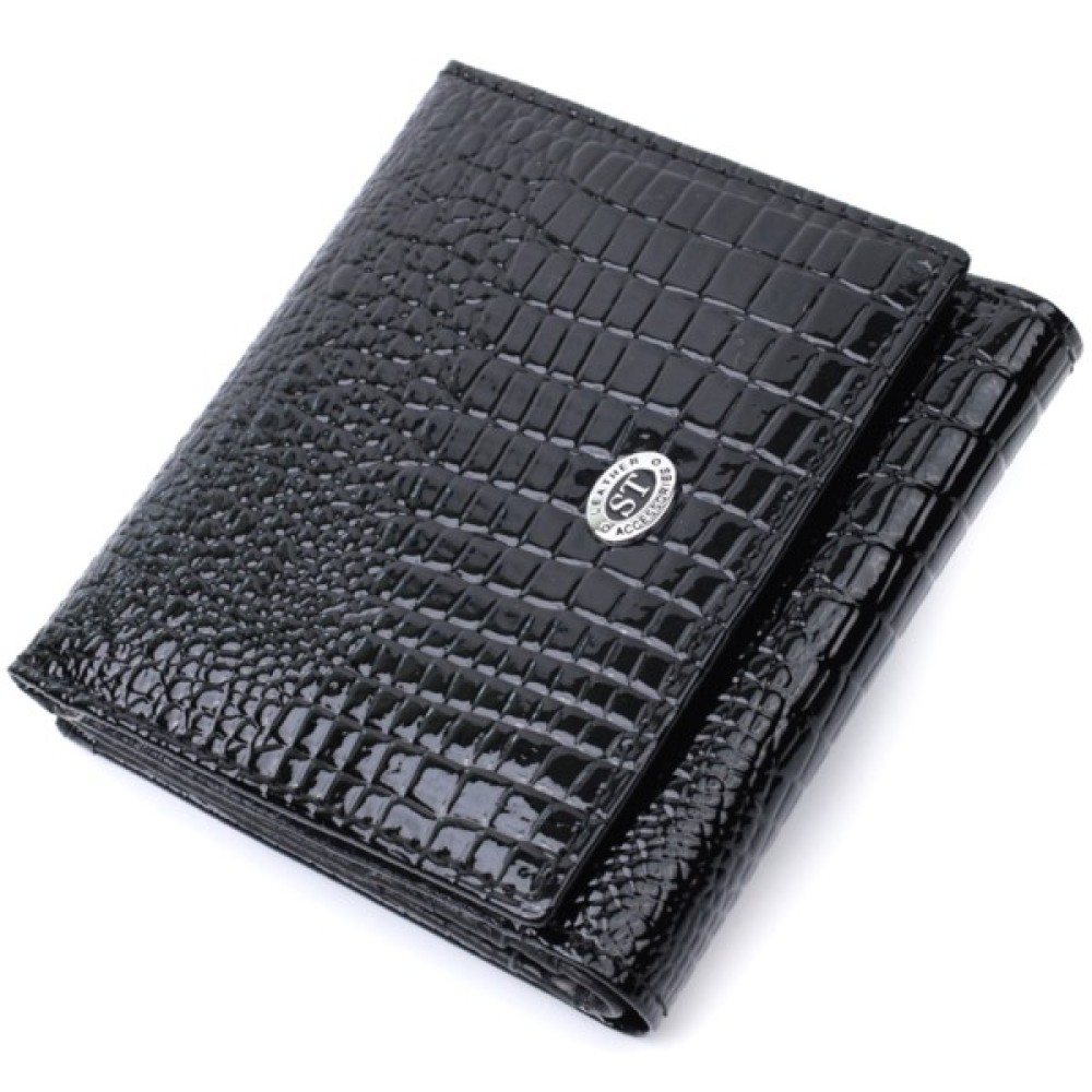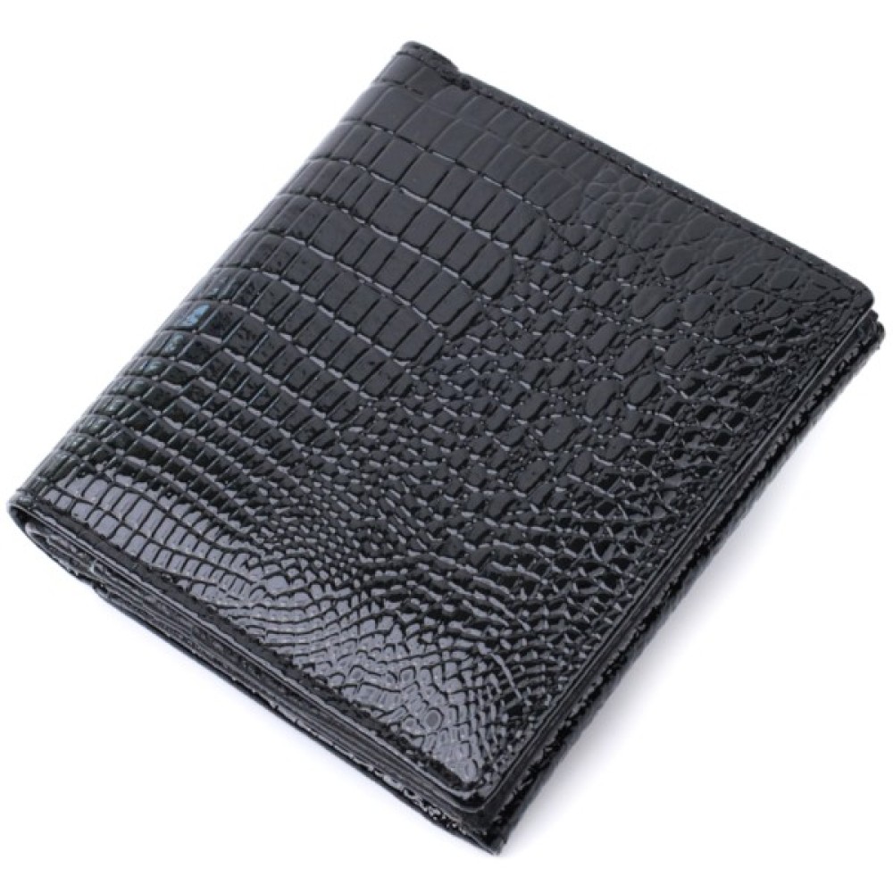 Універсальний гаманець для жінок із високоякісної лакованої шкіри із тисненням під рептилію. Має все необхідне, щоб стати Вам незамінним аксесуаром у повсякденному житті. Завдяки своєму компактному розміру аксесуар легко поміщається в найменшу сумочку. Ви легко помістите в нього паперові купюри, монети, документи, картки. На лицьовій стороні внизу посередині розташований металевий логотип виробника, що є запорукою якості виробу.