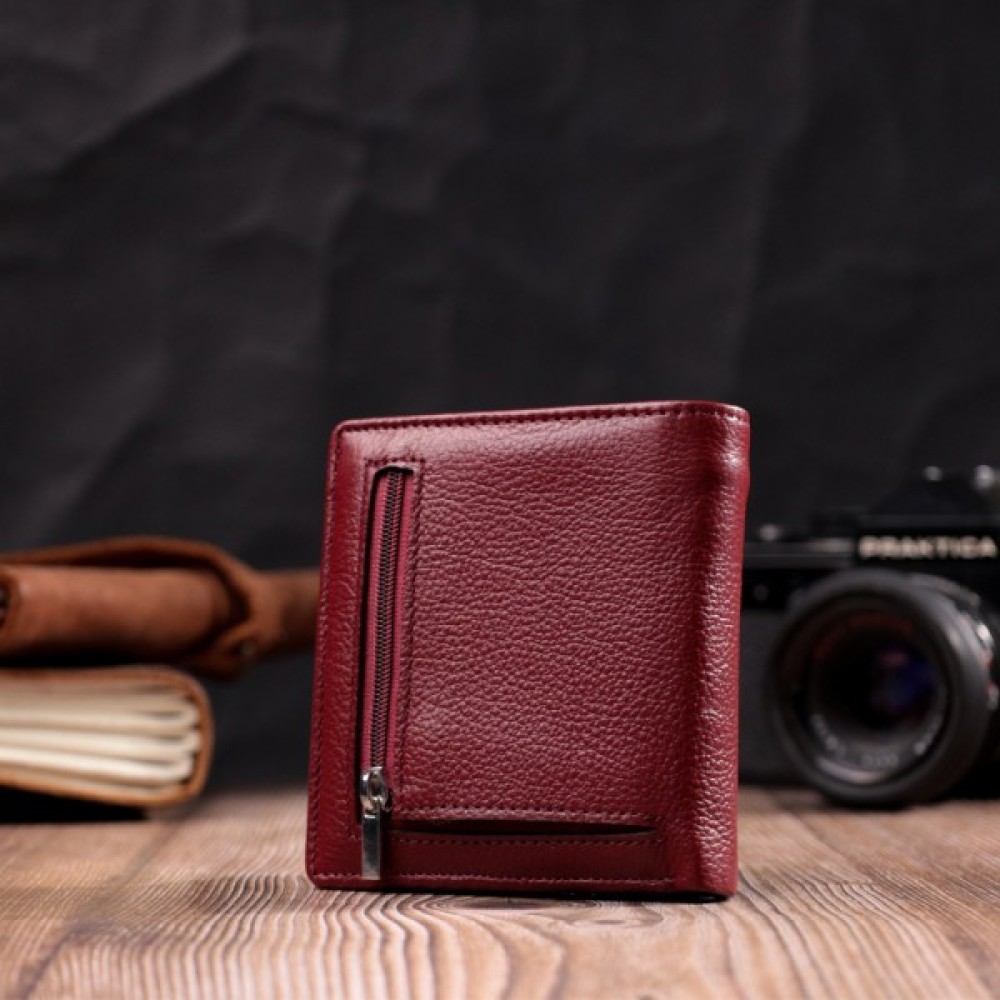 Яскравий невеликий гаманець із натуральної шкіри найвищої якості. Аксесуар складається з одного місткого відділення для купюр, кишені на блискавці через усю довжину, шести осередків для карт, двох прихованих кишень та зовнішньої кишені на блискавці, що чудово прослужить для монет. Портмоне доповнено надійною фурнітурою та міцною підкладкою. Виріб стане ідеальним подарунком для дівчини будь-якого віку.