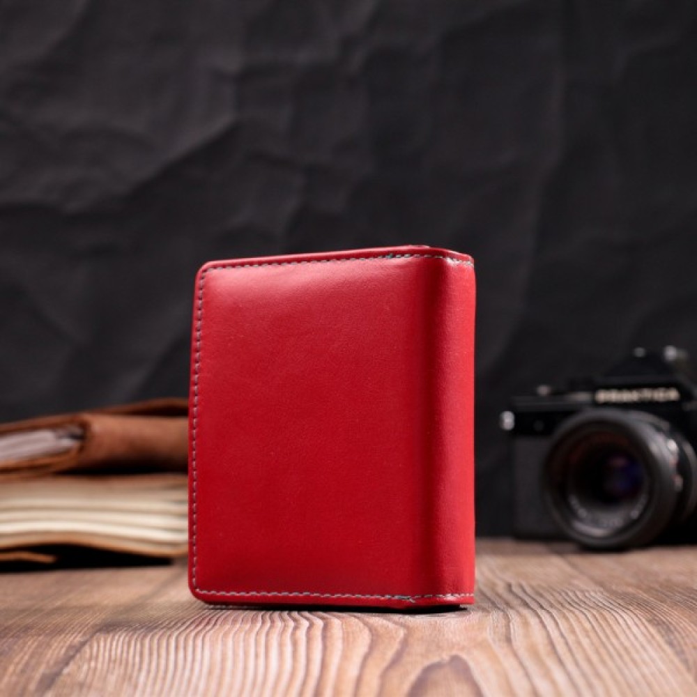Яскраве портмоне в два складання компактного розміру з натуральної шкіри найвищої якості.