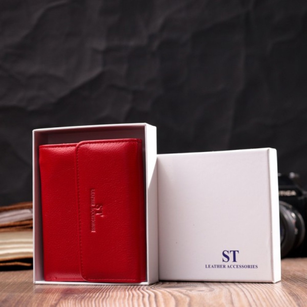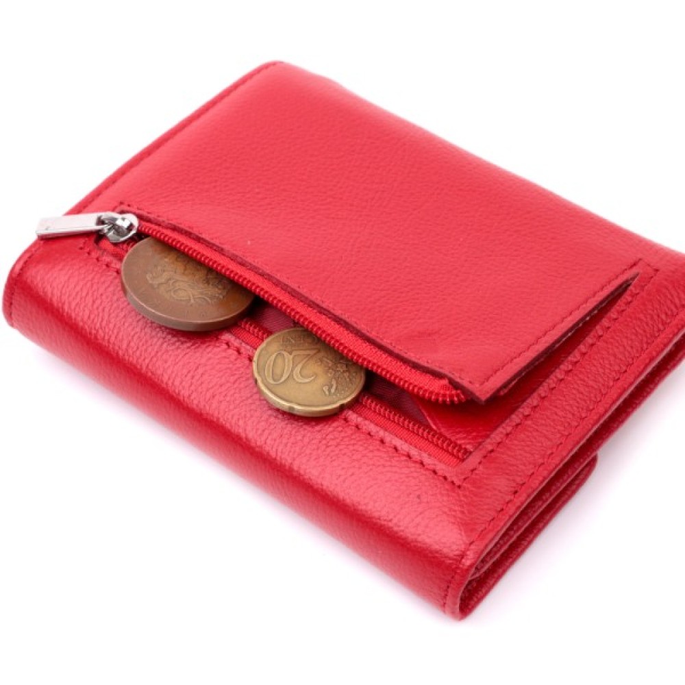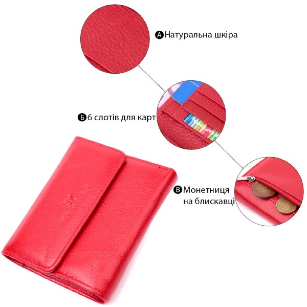 Яскравий гаманець середнього розміру з натуральної шкіри найвищої якості. Аксесуар складається з одного місткого відділення для купюр, кишені на блискавці через всю довжину, шісти осередків для карт, чотирьох прихованих кишень, кишені під плівкою та зовнішньої кишені на блискавці, що чудово прослужить для монет. Зовні виріб прошитий рівним рядком по краю і прикрашений тисненим логотипом компанії виробника, який розміщений на клапані посередині. Портмоне доповнено надійною фурнітурою та міцною підкладкою. Виріб стане ідеальним подарунком для дівчини будь-якого віку.