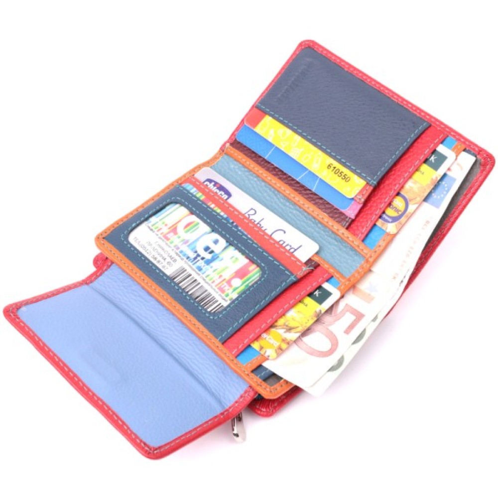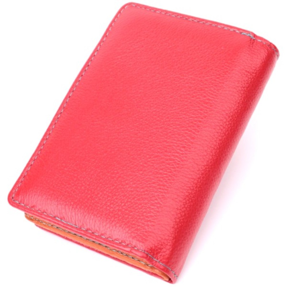 Гаманець для жінок у яскравому червоному кольорі, подвійного складання, що зручно закривається клапаном на магніт.