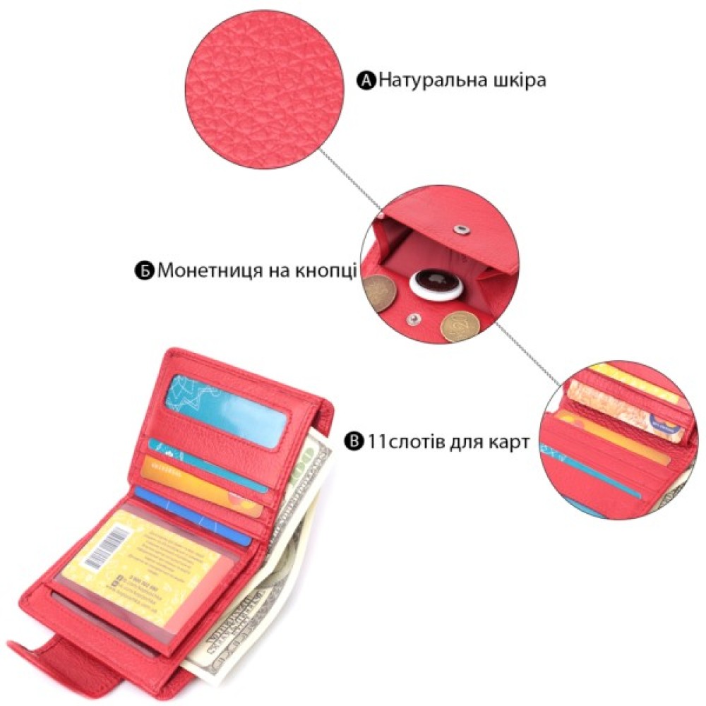 Яскравий вертикальний гаманець для жінок середнього розміру із високоякісної шкіри флотар, яка має благородну зернистість та високий рівень зносостійкості. Аксесуар має все необхідне, щоб стати Вам незамінним помічником у повсякденному житті. Ви легко помістите в нього паперові купюри, монети, документи, картки. На лицьовій стороні, у правому нижньому кутку розташоване тиснення логотипа виробника, що є запорукою якості виробу.