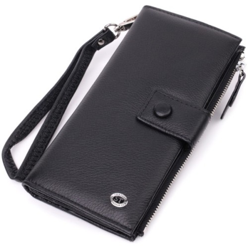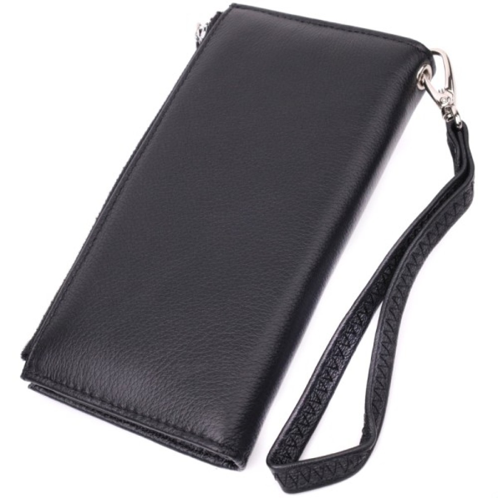 Класичний вертикальний жіночий гаманець із натуральної добротної шкіри. Особливістю моделі є те, що її можна носити на кисті, для цього передбачений шкіряний кистьовий ремінь, що знімається.