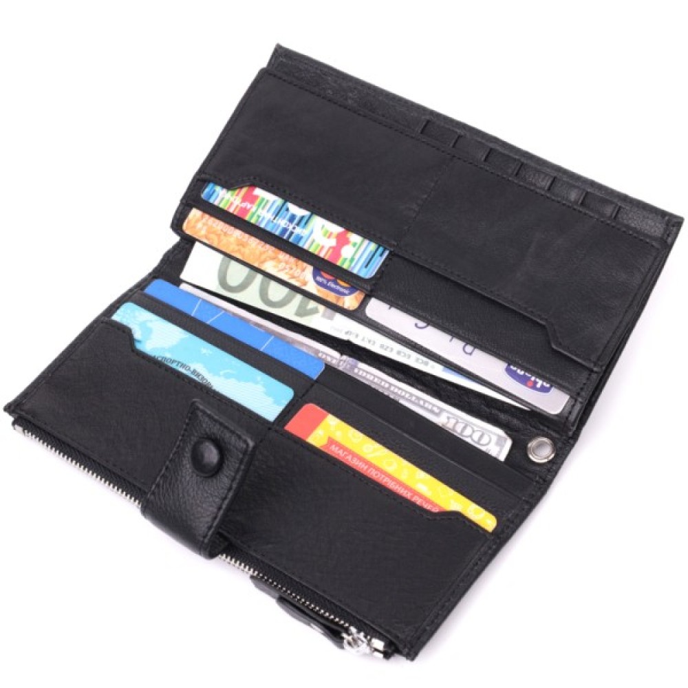 прозоре ID-віконце; подвійне складання; закривається на хлястик з кнопкою; знімний кистьовий ремінь; молодіжні; з монетницею; для карт; для документів