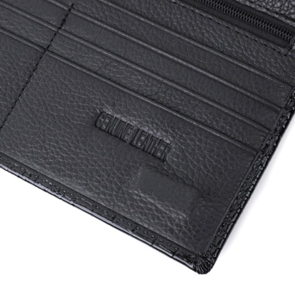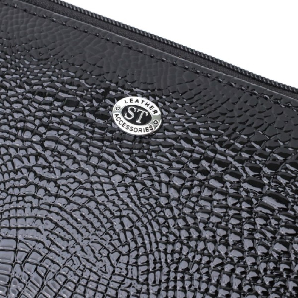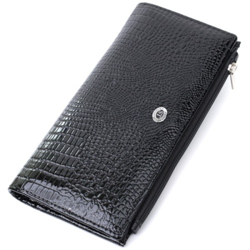 Практичний жіночий гаманець на кожен день із лакової натуральної шкіри з тисненням під рептилію. Така шкіра має чудові експлуатаційні характеристики.