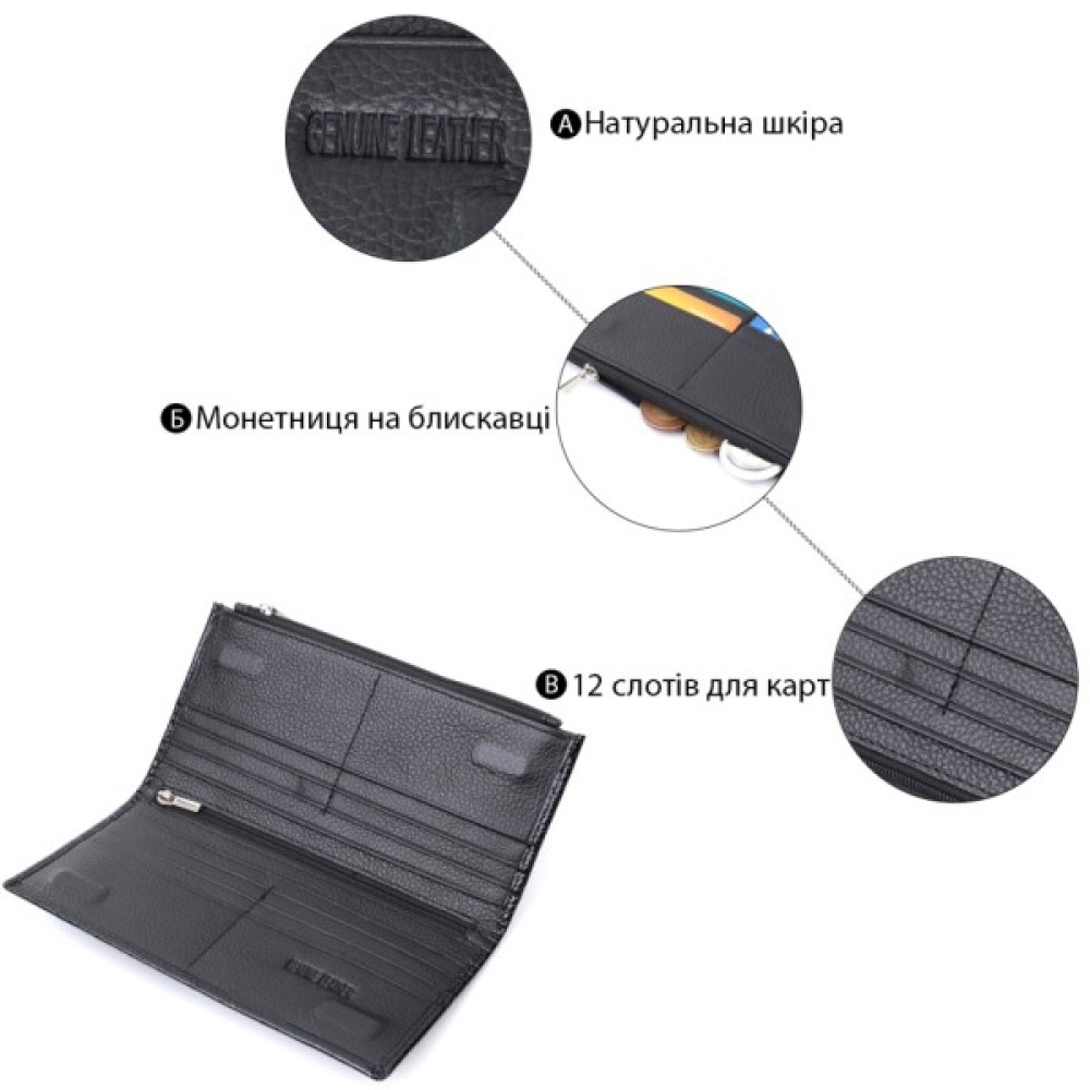 усередині два великі відділення для купюр по всій довжині;