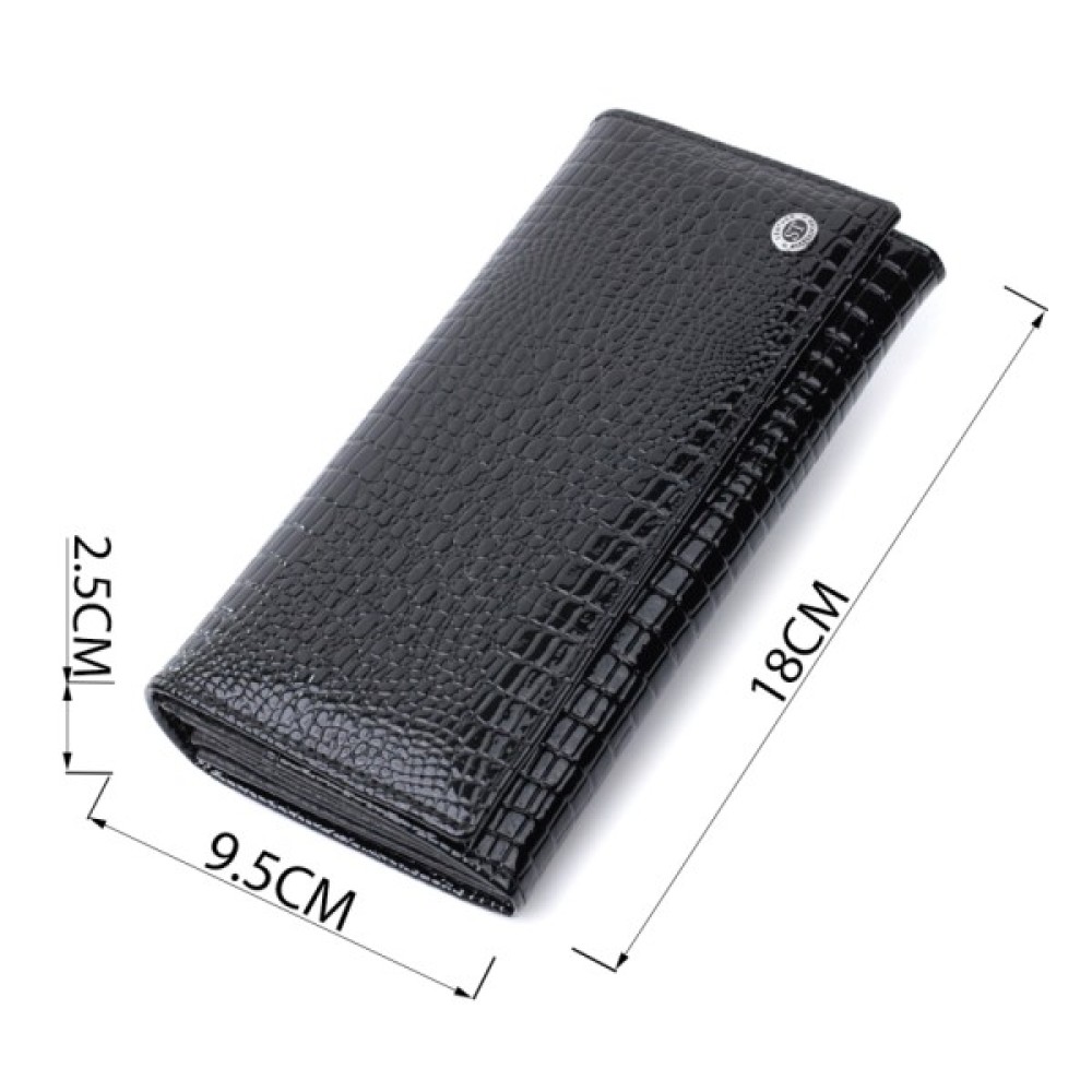 Зручний жіночий гаманець із лаконічної натуральної шкіри з тисненням під рептилію. Така шкіра має чудові експлуатаційні характеристики. Зовні виріб прикрашений металевим логотипом компанії-виробника, що є гарантією якості. Портмоне доповнено надійною фурнітурою та міцною підкладкою. Такий гаманець стане бажаним подарунком для жінок будь-якого віку та соціального статусу.