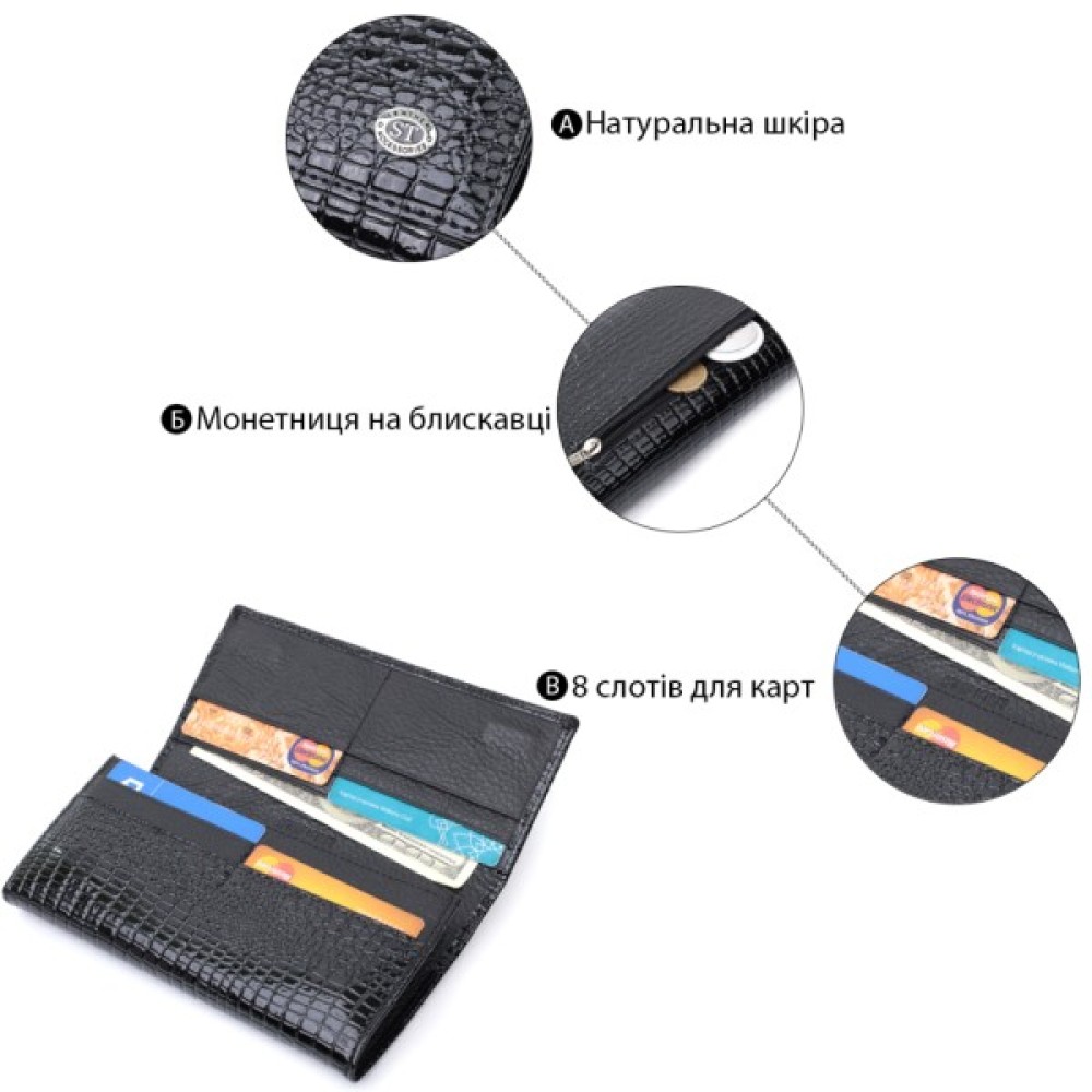 подвійне складання; з тисненням; з монетницею; для карт