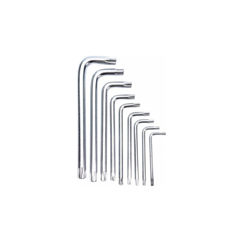 Набір ключів TORX Г-подібних з отвором (модель TKS0901) стане незамінним інструментом для професійних майстрів та любителів, які цінують високу якість інструментів. Цей комплект містить 9 ключів різних розмірів, включаючи Т45, Т10, Т27, Т40, Т20, Т30, Т25, Т15 та Т50, що дозволяє використовувати його для широкого спектра завдань.