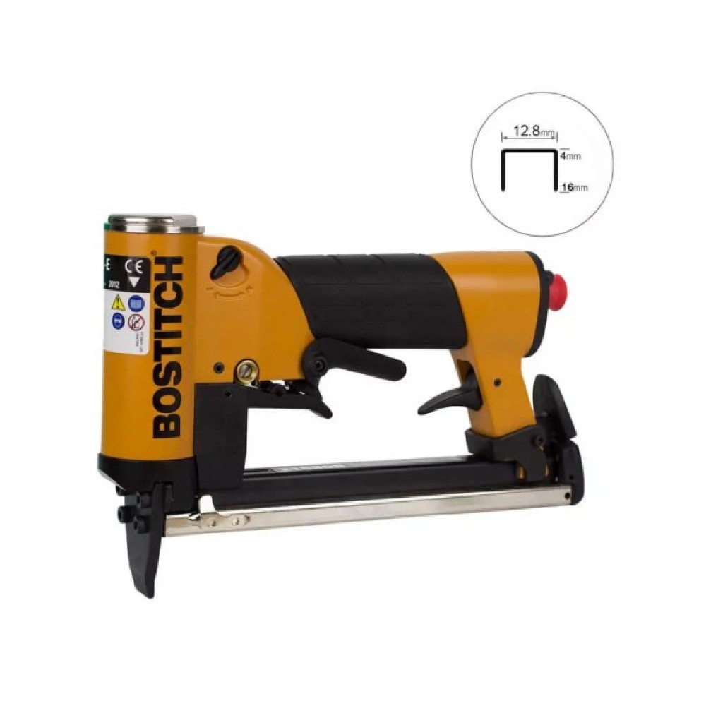 Скобозабивний пістолет Bostitch 4-16 мм компактний і легкий інструмент дає змогу працювати упродовж тривалого часу з меншою втомою. Регулювання сили забивання дає змогу працювати з різними матеріалами, не псуючи їх (наприклад, пробивання поліетилену). Додатковий гачок для відкривання магазину, дає змогу відкривати його однією рукою, що особливо важливо під час роботи на висоті.