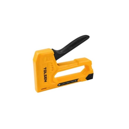Надійний і зручний степлер Tolsen призначений для роботи зі скобами розміром 6–10 мм (товщина 0,7 мм). Використовується для кріплення тканин, плівки, картону, декоративних матеріалів, оббивки меблів та інших побутових і професійних завдань. Корпус виготовлений з ударотривкого пластику, що робить інструмент легким та зручним у використанні. Простий у заправці й експлуатації, забезпечує надійне кріплення навіть при інтенсивному застосуванні.