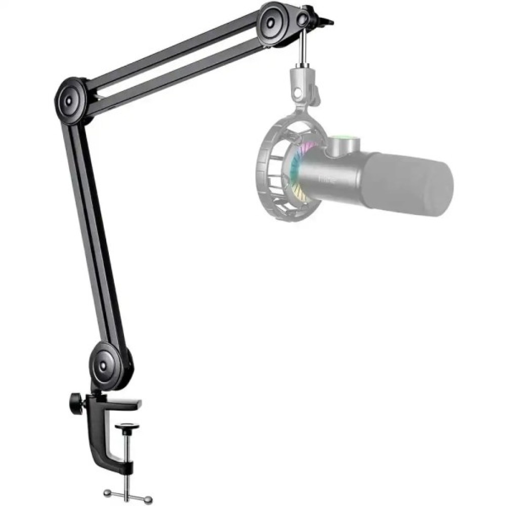 Fifine BM63 - це настільна стійка-пантограф для мікрофона. Призначена для встановлення мікрофону в тісних умовах, наприклад, в апаратних кімнатах радіостанцій, у невеликих студіях або в домашніх умовах. Кріпиться до поверхні за допомогою затискача. Підставка здатна витримати вагу практично будь-якого мікрофона, максимальне навантаження до 2 кг.