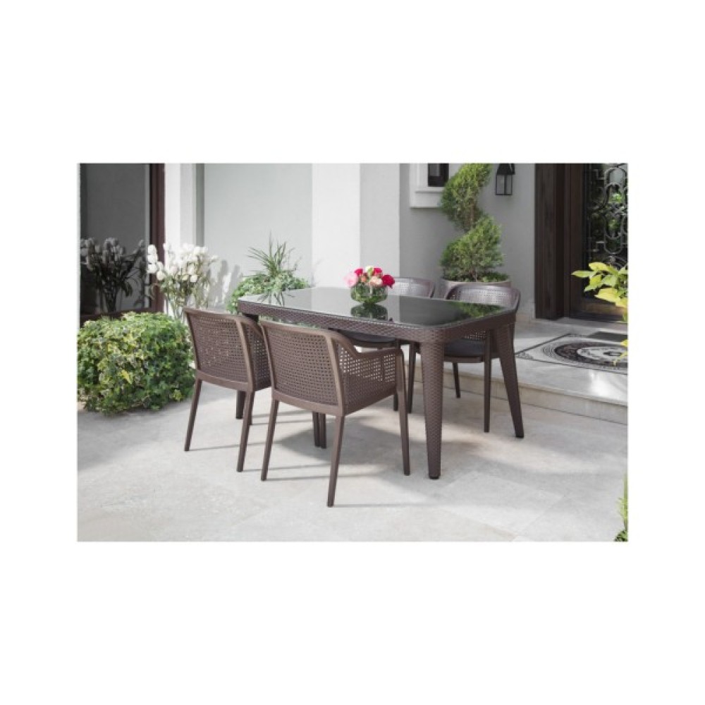 Стіл Osaka зі скляною стільницею і каркасом під ротанг чудово підходить для використання, як в класичних так і в сучасних стильових напрямках. Стіл виглядає презентабельно, надає інтер'єру стильності і розкоші. Підходить для використання на вулиці біля басейну, терасах, садах, а також в приміщенні ресторанів, обідніх кімнат і кухонь. Ніжки мають регулювання висоти і ухилу. Матеріали виробу стійкі до перепадів температур, УФ-випромінювання.