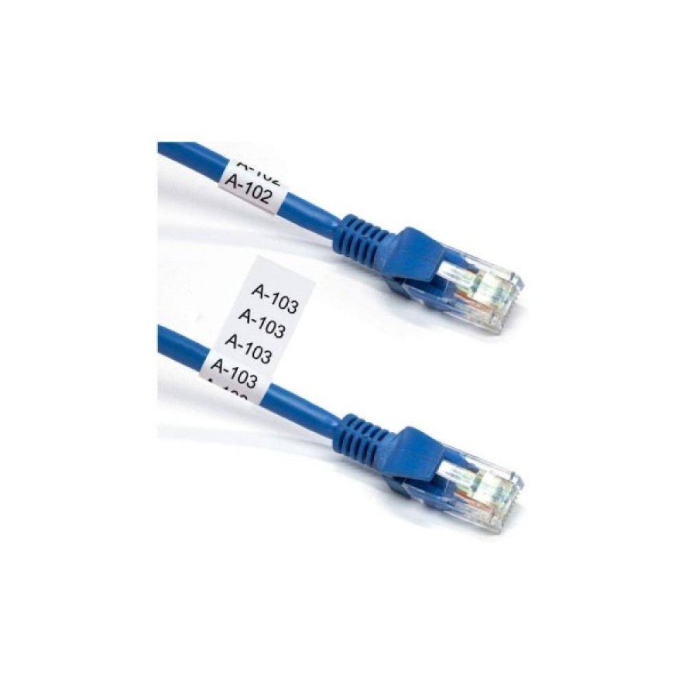 Стрічка для друку наклейок чорним на білому тлі зі спеціальною клейкою речовиною ідеально підходить для маркування кабелів, проводів, труб із ПВХ або будь-яких інших предметів циліндричної форми.