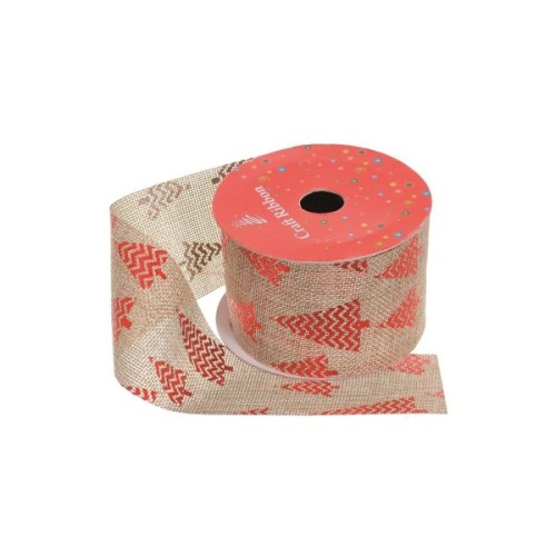 Стрічка на ялинку Jumi з візерунком ялинки, сніжинки 6,3 см х 2,7 м, джут (5900410698536_1)