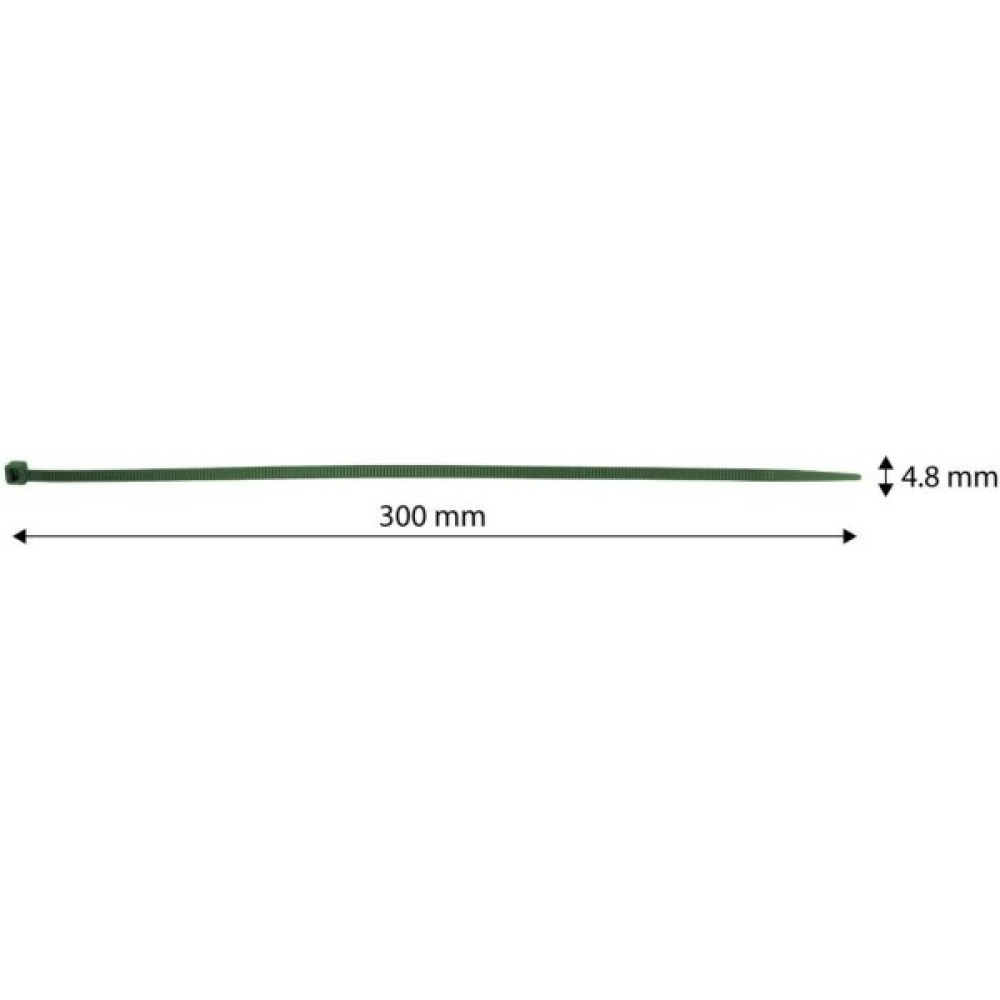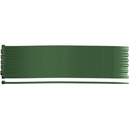 Зручність користуванняРозмір 4,8х300 мм – оптимальний для більшості садових потреб. Зелений колір стяжок гармонійно поєднується із природним середовищем, роблячи їх практично непомітними на рослинах.