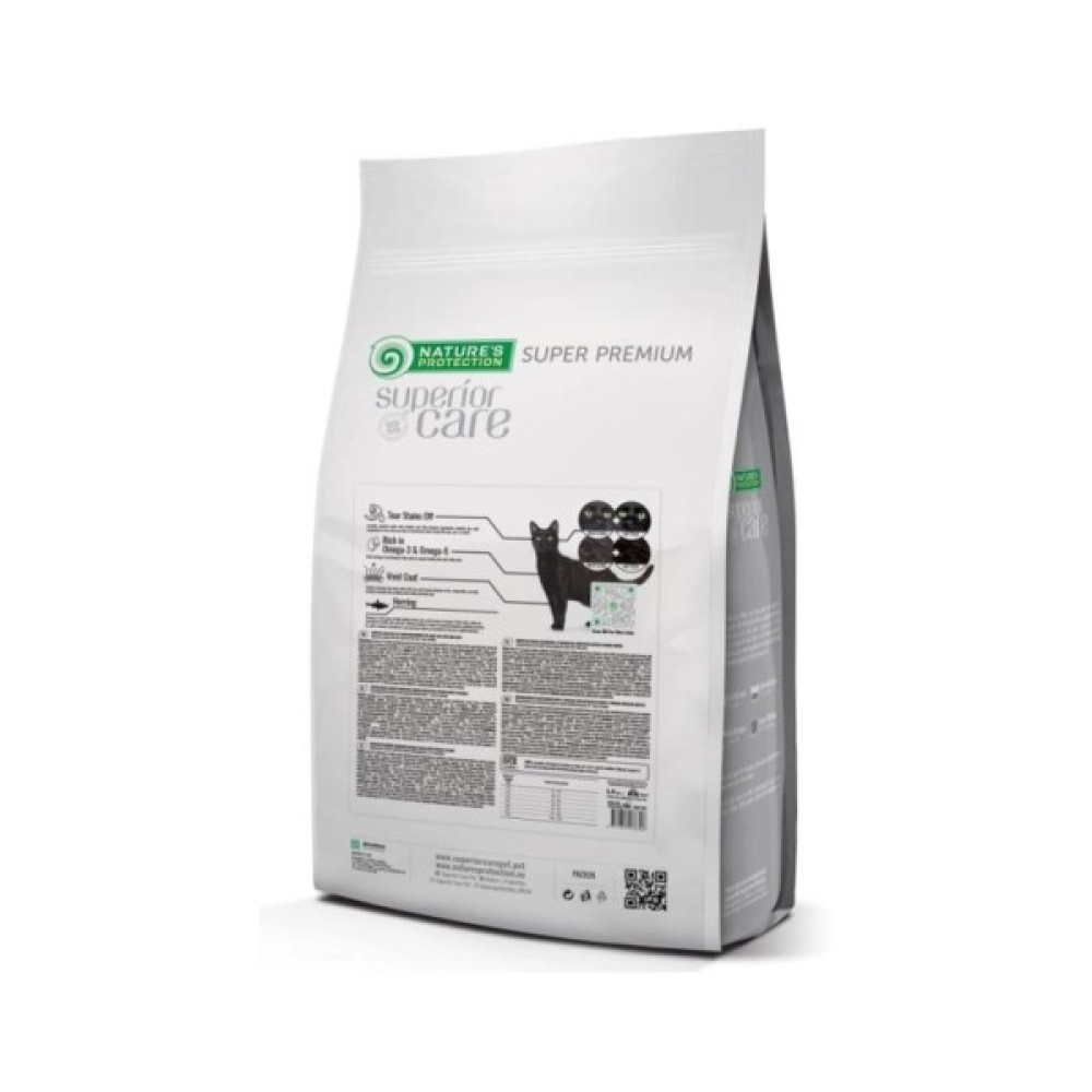 Сухий корм для кішок Nature's Protection Superior Care Dark Cats Grain Free Herring вагою 1.5 кг є ідеальним рішенням для дорослих котів усіх порід, які потребують турботи про шкіру та шерсть. Унікальна формула Dark Coat Enhancer спрямована на зміцнення чорного пігменту в шерсті вашого улюбленця, надаючи йому яскравий та насичений вигляд. Цей суперпреміум корм виготовлений у Литві та містить ретельно підібрані інгредієнти, що забезпечують харчову збалансованість та високу засвоюваність.
