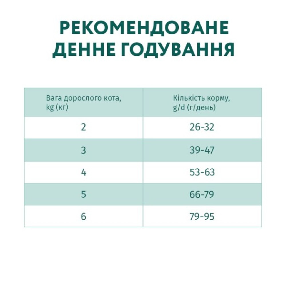 основне годування; для дорослих котів з чутливим травленням; для контролю утворення грудок вовни