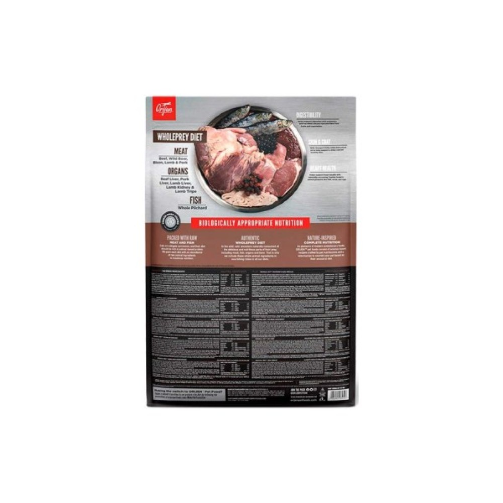 Orijen Regional Red покликаний задовольнити природні потреби дорослих котів, віком від 12 місяців. Його формула базується на використанні свіжої яловичини, дикого кабана, оселедця та ягняти, з максимальною часткою м’яса та риби серед інгредієнтів, що становлять 90% раціону. Це допомагає відтворити раціон диких предків котів, збалансований за вмістом білків та жирів.