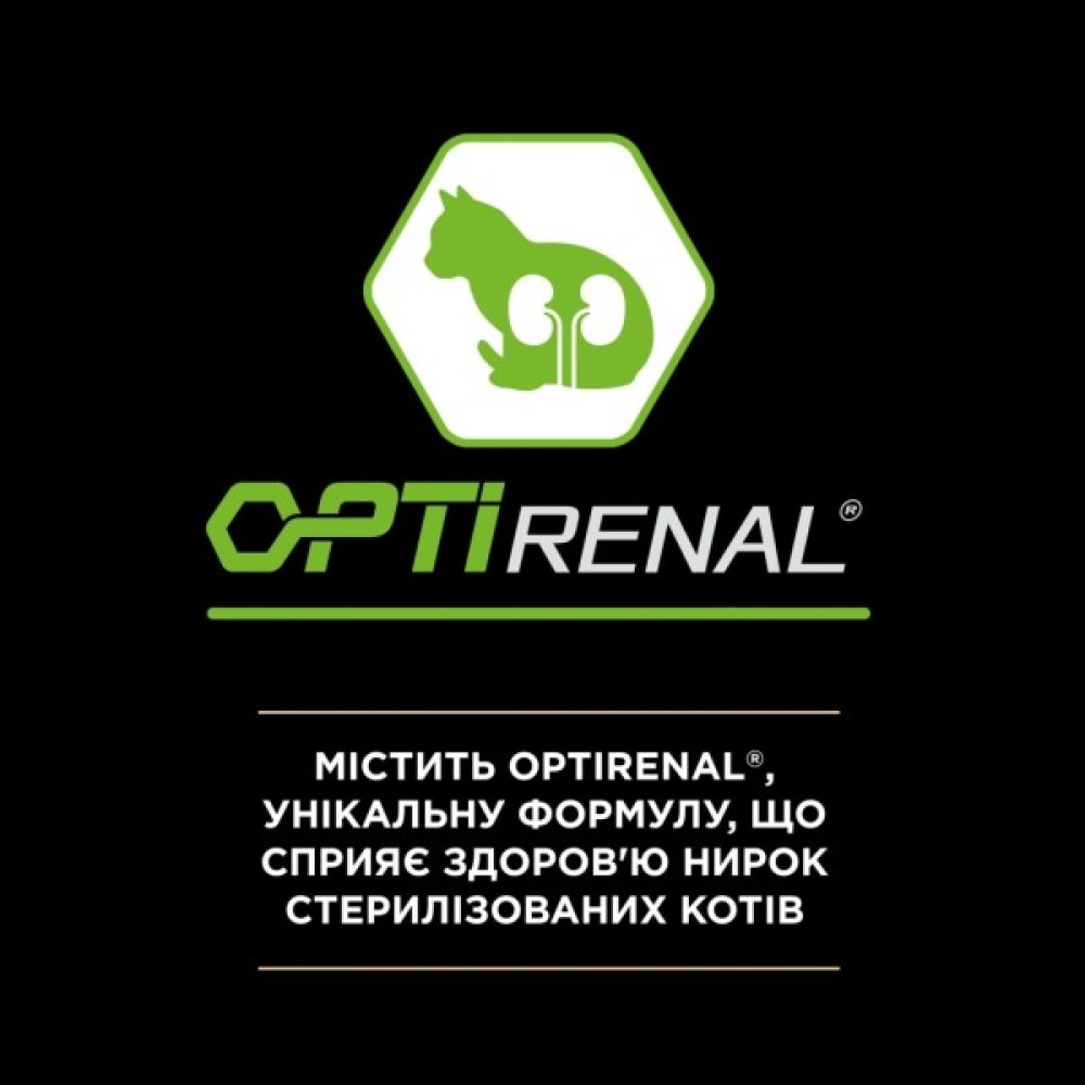 Цей корм турбується також про здоров'я нирок і сечовивідної системи, знижуючи ризик утворення сечових каменів, що особливо важливо для стерилізованих котів. Хрустка текстура корму Purina Pro Plan Sterilised сприяє очищенню зубів, запобігаючи утворенню нальоту та зубного каменю.